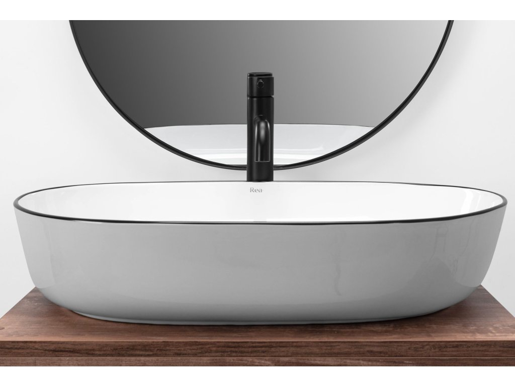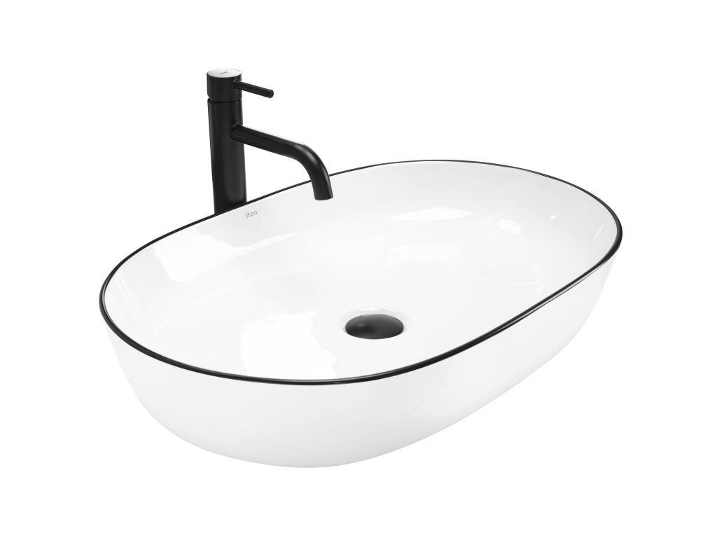 Rea Cleo umývadlo na dosku 60,5 x 41 cm, biela/čierny okraj, REA-U6210
