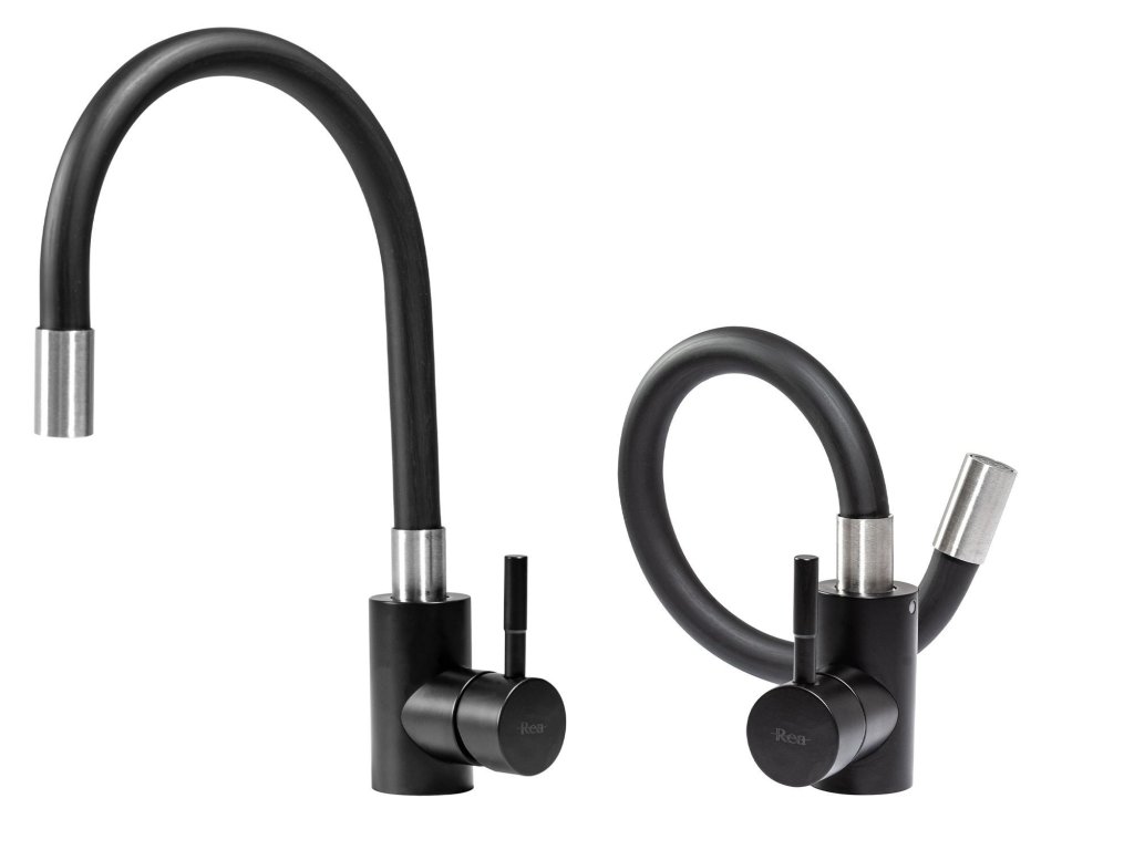 Rea Clever vysoká kuchynská batéria, flexi rameno, čierna-chrómová, REA-B5698