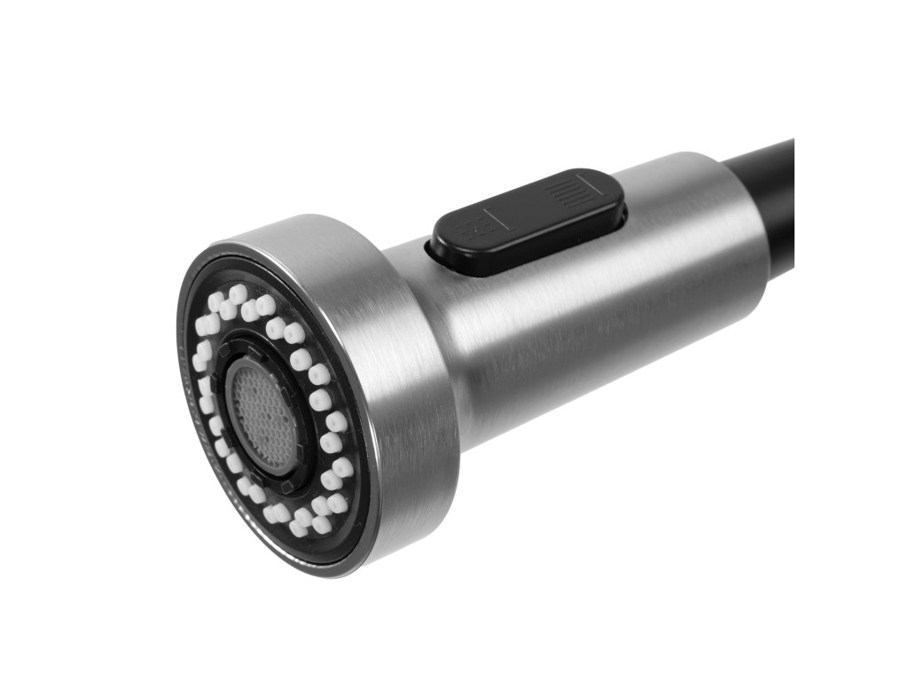 Základom každej funkčnej kuchyne je vhodná kuchynská batéria. Kovový korpus batérie zaručuje jej odolnosť a stabilitu. Brúsený povrch chráni batériu pred nečistotami a strieborná farba jej dodáva nevšedný vzhľad, ktorý bude dokonale ladiť s dekorom vašej kuchyne. Dlhodobú spoľahlivosť zaručuje použitie keramickej hlavice. Ohnutý výtok umožňuje nasmerovať prúd vody na ľubovoľné miesto. Na špičke výtoku je prepínač, ktorý umožňuje voliť medzi rozptýleným prúdom a koncentrovaným prúdom. Montážny návodDodatočné parametre