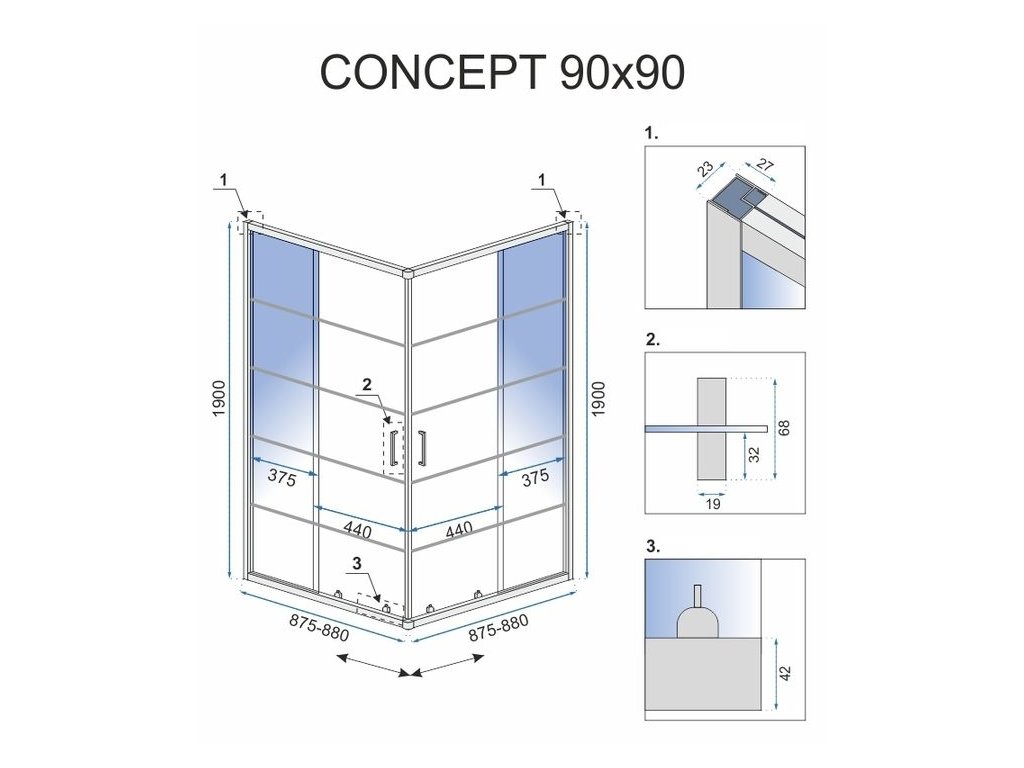 Veľkosť (dvere x stena): | 90 x 90 |
