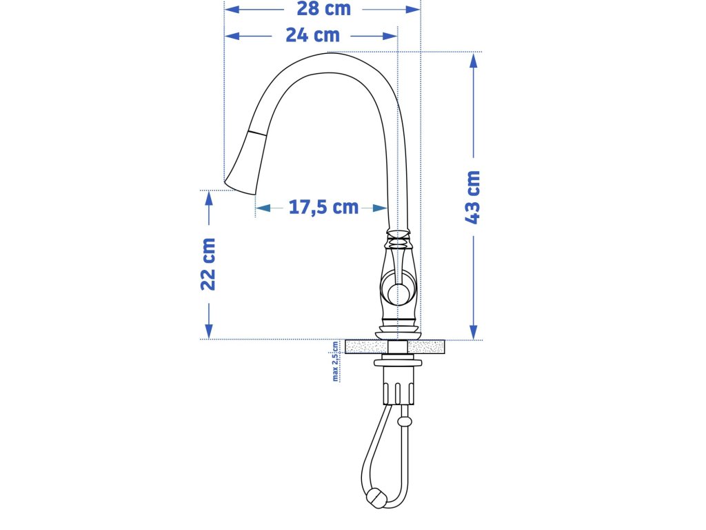 Sme radi, že vám môžeme predstaviť mimoriadne jedinečnú veľkú kuchynskú batériu, ktorá sa vyznačuje funkčnosťou a dizajnom. Batéria je vyrobená z mosadze a potiahnutá špeciálnou vrstvou čiernej farby vysoko odolnej proti poškriabaniu, ktorá bola navyše zostarnutá pre efekt retro štýlu a ľahko sa čistí. Batéria Deco Old Black sa hodí doslova do každej kuchyne. Montážny návodDodatočné parametre