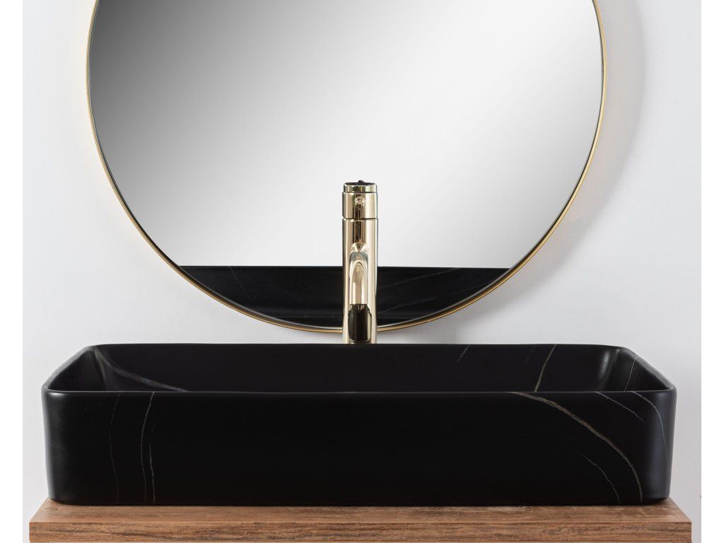 Predstavujeme Vám nové moderné umývadlo na dosku série Rea Denis. Umývadlo obdĺžnikového tvaru je vyrobené z materiálov najvyššej kvality a jeho vlastnosti splnia všetky vaše požiadavky. Tento model ocení predovšetkým zákazník, hľadajúci nielen praktické, ale aj estetické riešenie. Umývadlo je určené na montáž na dosku, ale je možné ho namontovať aj na skrinku. Umývadlo v čiernom matnom prevedení s mramorovým efektom sa navyše vďaka špeciálnej fáze výroby ľahko čistí, je veľmi odolné a má svoj jedinečný vzor.Dodatočné parametre