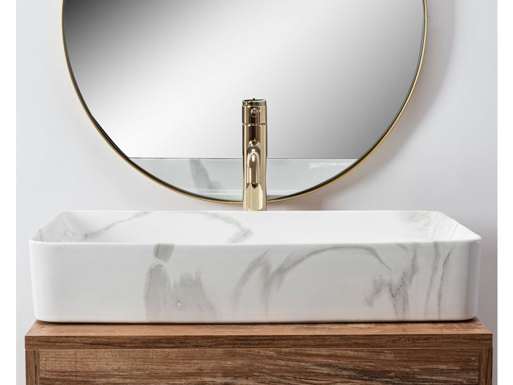 Rea Denis Shinny Marmo, keramické umývadlo na dosku 62 x 35 cm, imitácia kameňa, REA-U5896