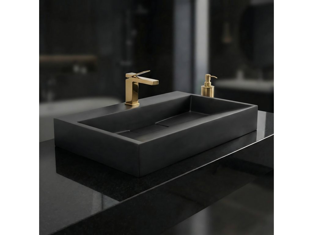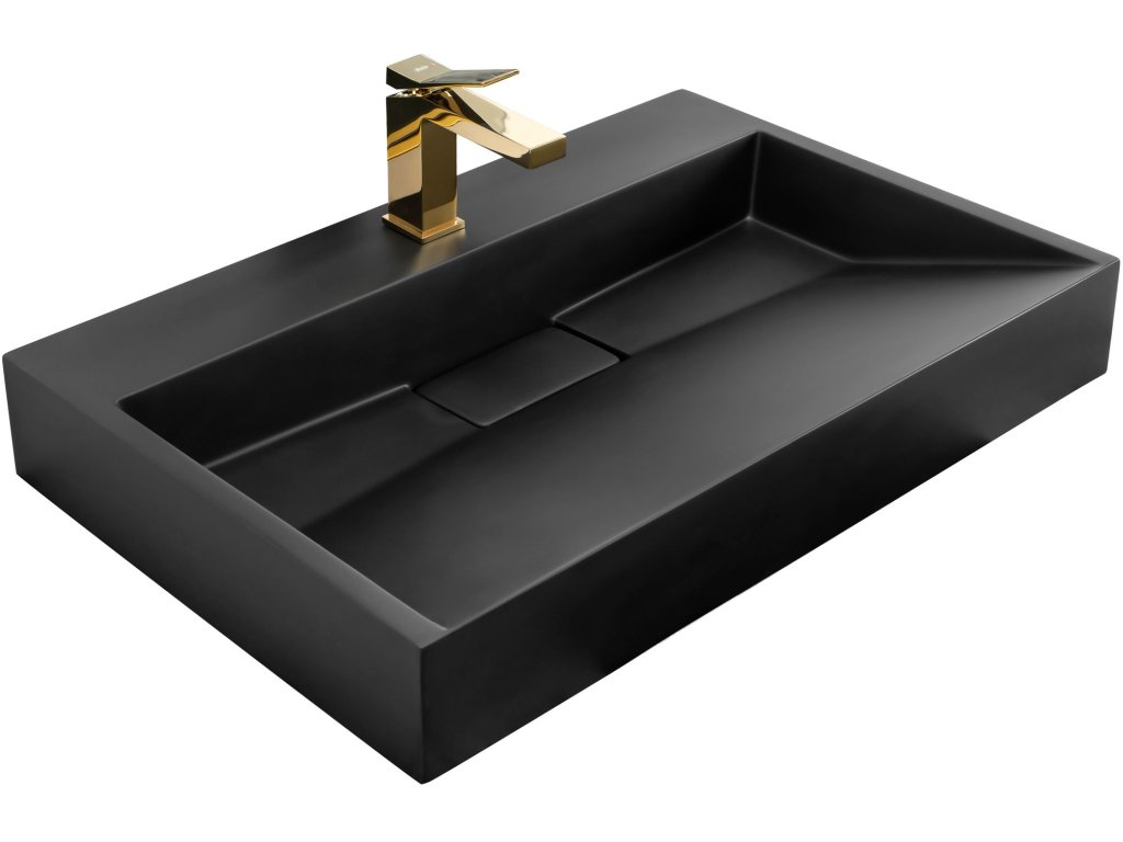 Rea Goya konglomerátové umývadlo na dosku 70 x 46 cm, čierna matná, REA-U8802