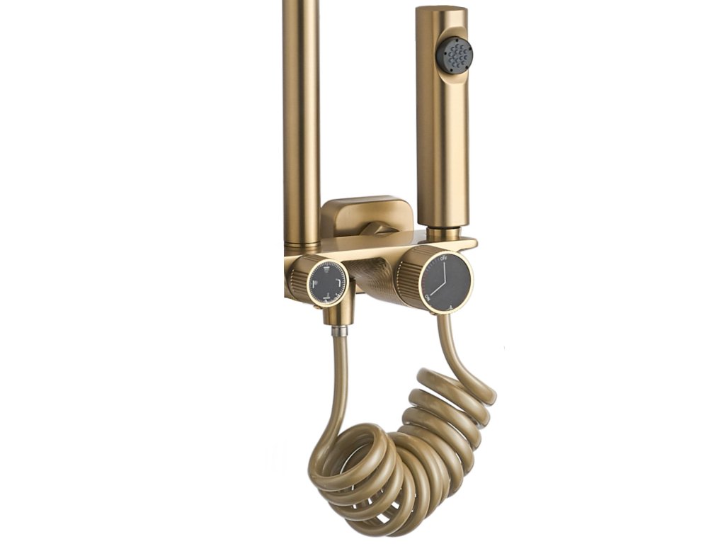 Rea Helix, nástenný sprchový set s termostatickou batériou a bidetovou spŕškou, zlatá brúsená, REA-P6621