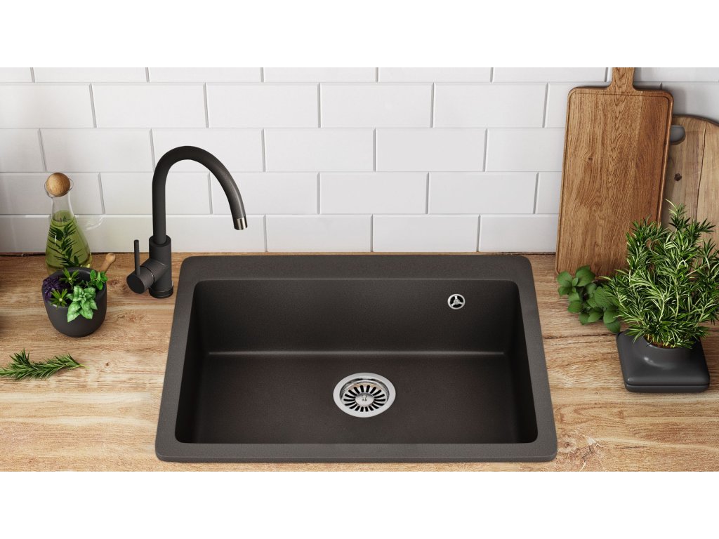 Rea Lin 1-komorový kuchynský drez, čierna žula, ZLE-00129