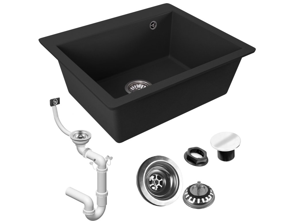 Rea Lin 1-komorový kuchynský drez, čierna žula, ZLE-00129 Séria drezov Rea Lin s pripojeným príslušenstvom je reakciou na rastúce očakávania zákazníkov na vysoko kvalitný dopyt v oblasti sanitárneho vybavenia kuchýň. Nadčasový tvar, použitie najkvalitnejších materiálov a technológií, skvelý dizajn a kompatibilita použitých riešení zaručujú dokonalý konečný výsledok a vyplnenie každého kuchynského priestoru. K dispozícii sú rôzne farebné varianty. Sada obsahuje konglomerátový granitový drez, sifón, zátka, odtokovú sadu s možnosťou pripojenia práčky alebo umývačky. Montážny návodDodatočné parametre