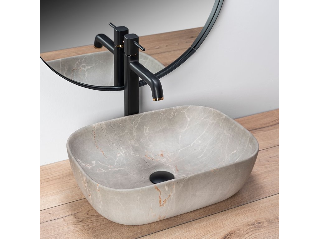 Predstavujeme Vám nové moderné voľne stojace umývadlo série Rea Livia. Umývadlo obdĺžnikového tvaru je vyrobené z vysoko kvalitných materiálov. Vďaka svojim vlastnostiam splní požiadavky všetkých ľudí, ktorí požadujú dokonalé vlastnosti a parametre podľa svojich predstáv. Ide o perfektný model pre ľudí, ktorí hľadajú predovšetkým funkčné, ale hlavne jednoduché riešenie. Umývadlo je určené na montáž na dosku alebo skrinku. Umývadlo je vyrobené v elegantnom prevedení imitujúcom kameň, pričom vďaka technike, akou bola upravená vrchná vrstva umývadla, je každý vzor unikátny. Vďaka špeciálnej fáze výroby sa ľahko čistí a je veľmi odolné.Dodatočné parametre
