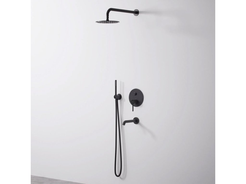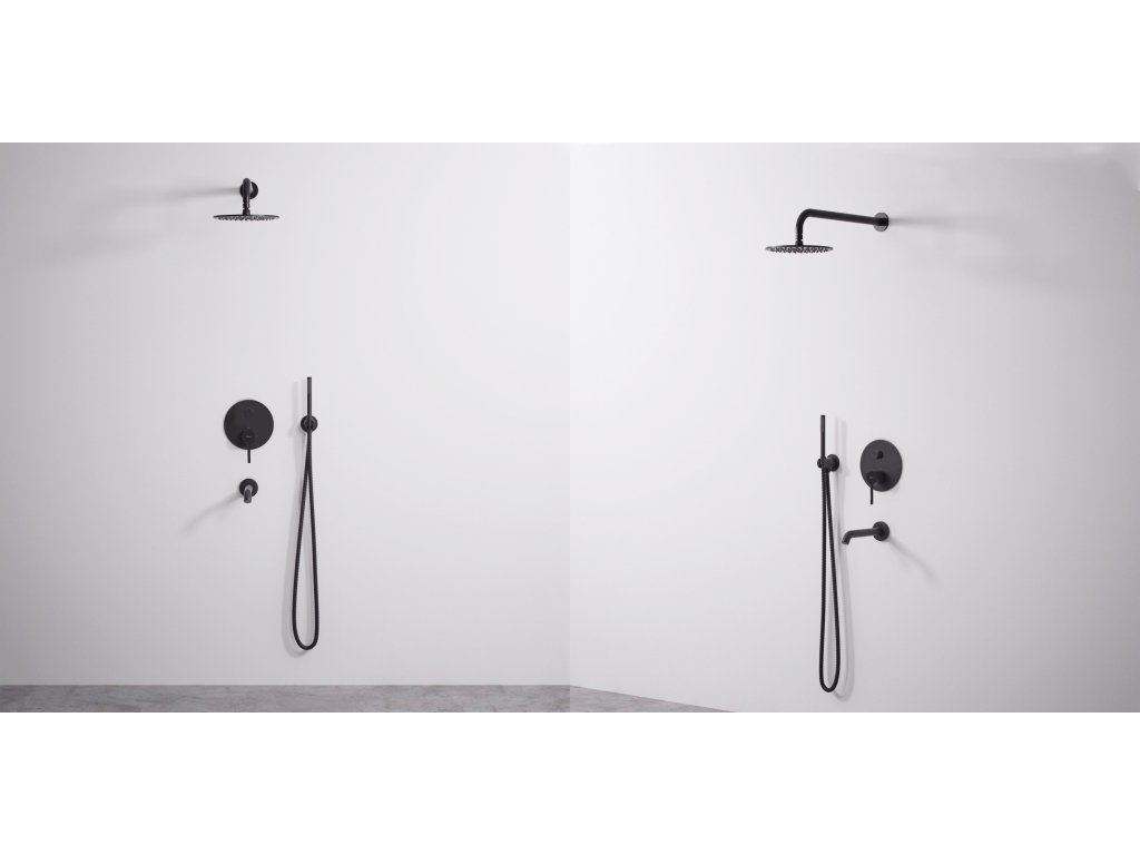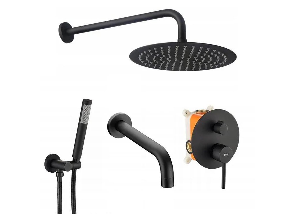 Podomietková vaňová a sprchová sada Lungo – čierna Predstavujeme Vám nový model podomietkovej sady z radu Lungo. Pre svoju univerzálnosť a úžasné estetické kvality je sada skvelou voľbou do každej kúpeľne. Módny tvar povrchových prvkov bol pokrytý 4-násobným laserovým povlakom z najkvalitnejšieho čierneho matného materiálu. Vďaka tejto technike je batéria chránená proti korózii, zmatneniu a zmene farby. Sada obsahuje iba 2 mm tenkú dažďovú sprchu s priemerom 25 cm, batériu s povrchovými a podomietkovými prvkami, hadicu s ručnou sprchou a bodový set. Zostava Lungo je ideálna pre zákazníkov, ktorí hľadajú mimoriadne riešenia a chcú si vytvoriť originálnu a jedinečnú kúpeľňu svojich snov. CAD Montážny návodDodatočné parametre