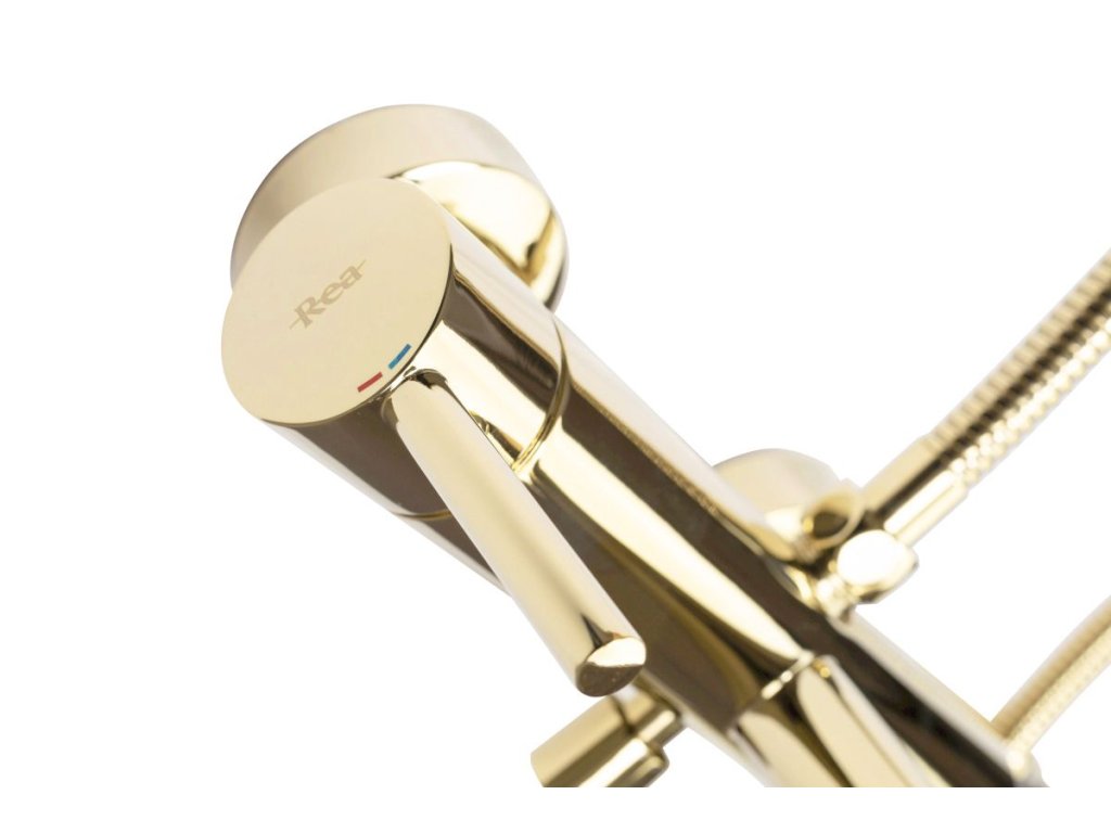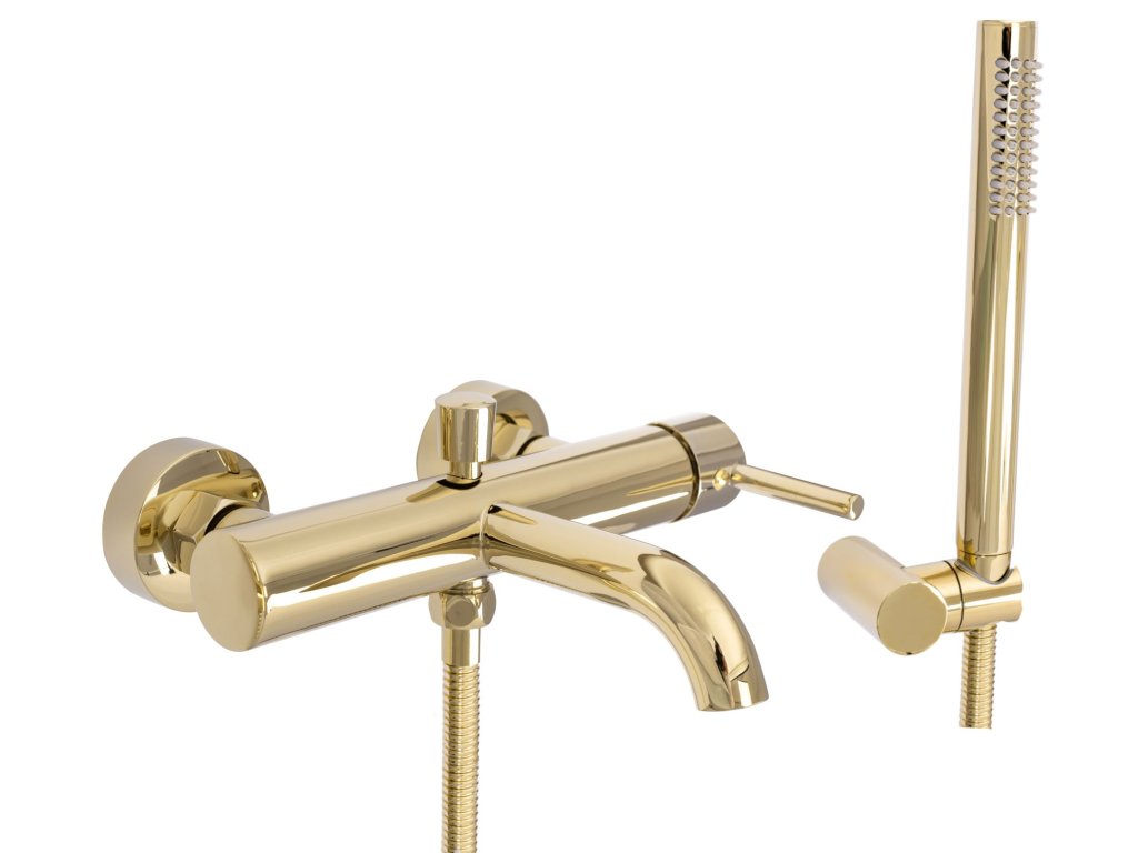 Rea Lungo nástenná vaňová batéria + ručná sprchová súprava, zlatá lesklá, REA-B6635
