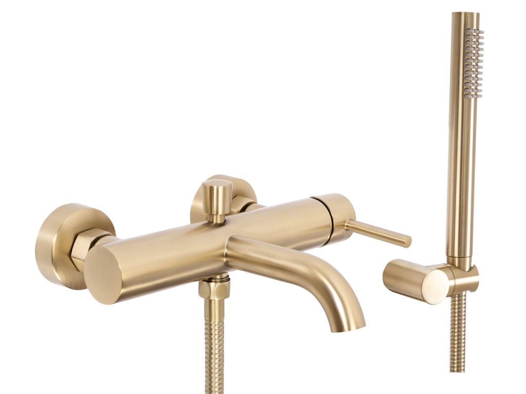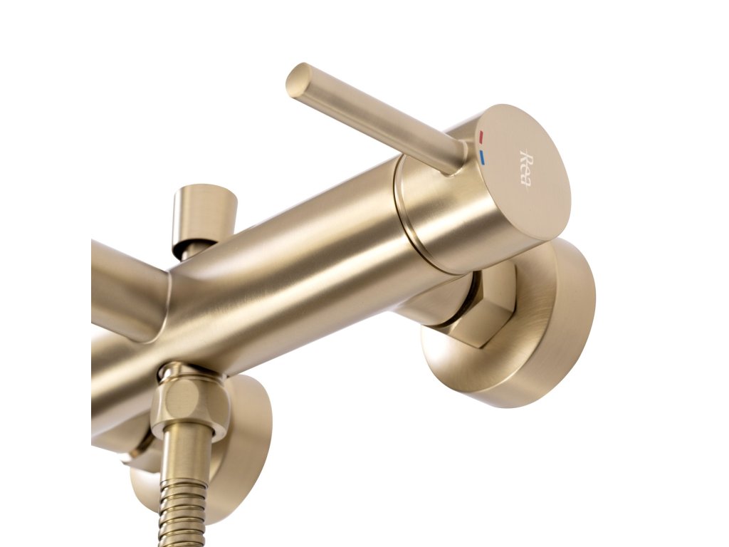 Rea Lungo nástenná vaňová batéria s ručnou sprchovou sadou, zlatá matná, REA-B8010