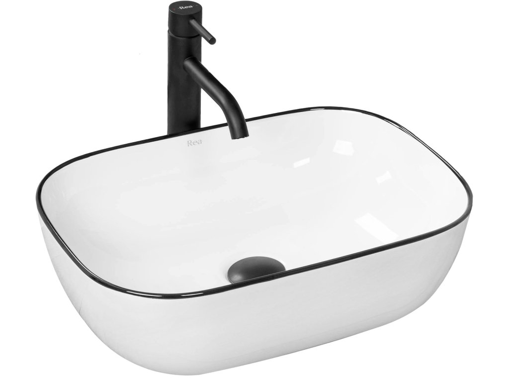 Rea Marbel umývadlo na dosku 47 x 33 cm, biele/čierny okraj, REA-U8603