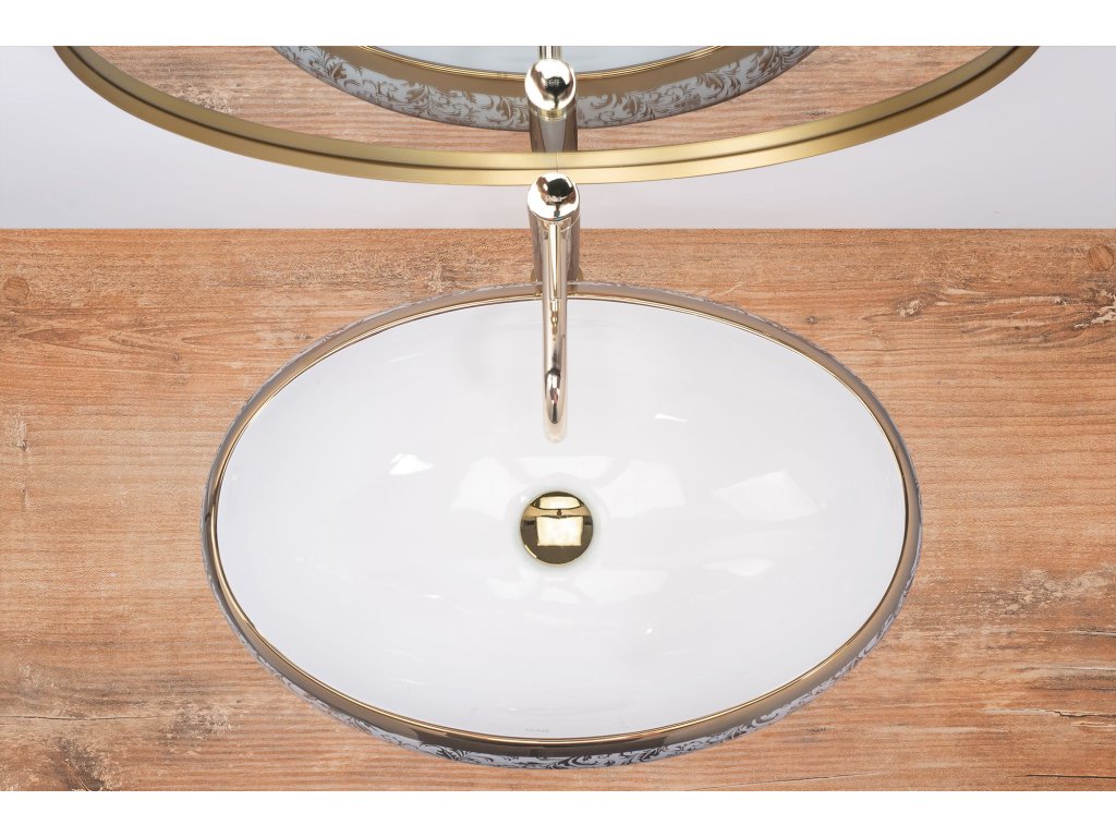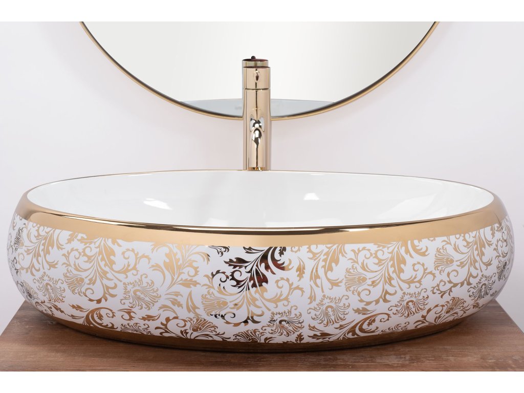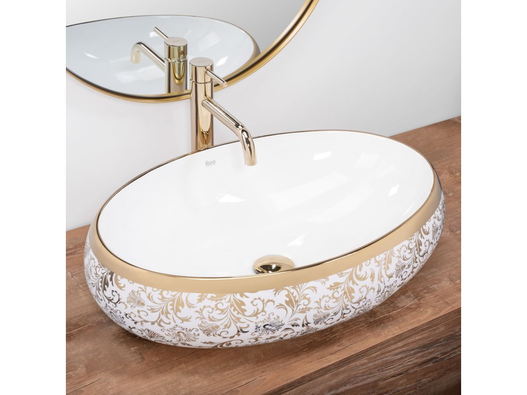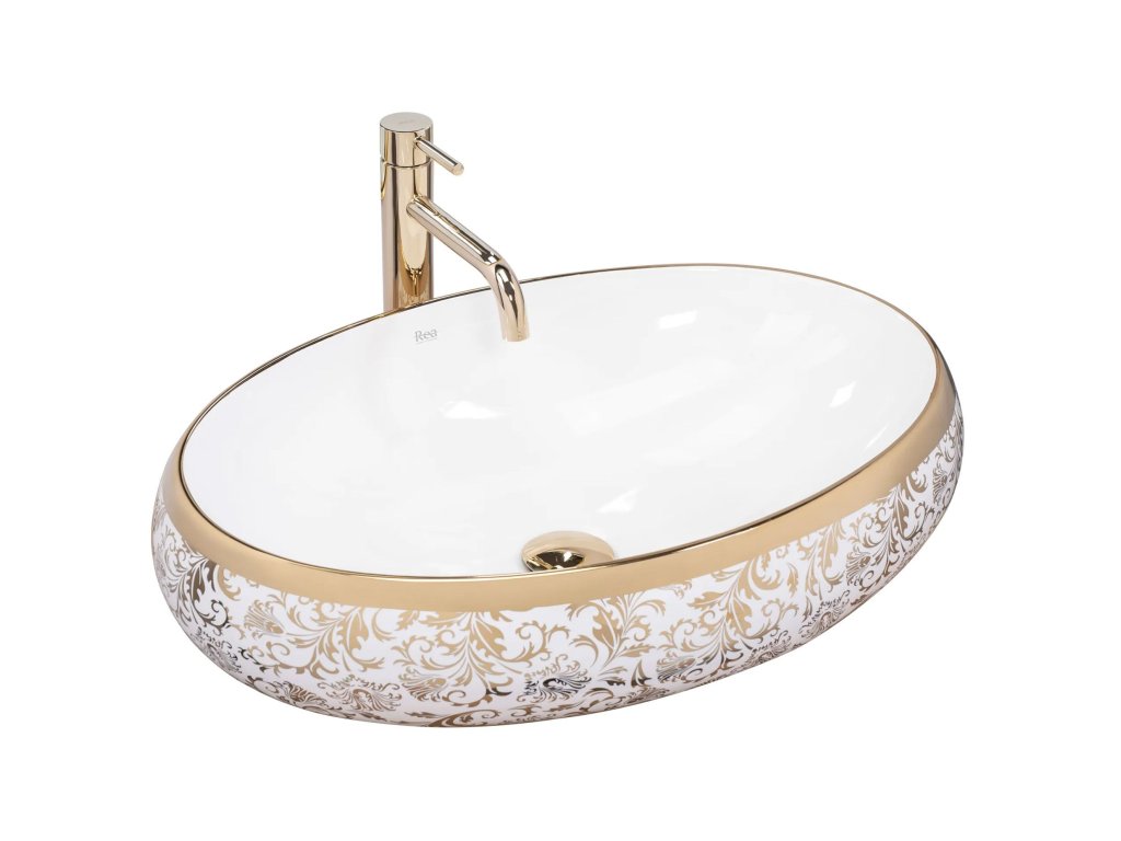Rea Melania Meryl umývadlo na dosku 60 x 41 cm, biela/zlatý vzor, REA-U5054