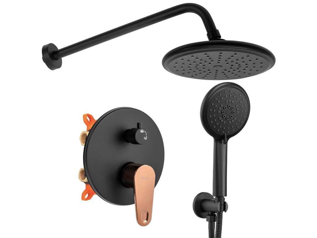 Rea Mild podomietková sprchová súprava + BOX, čierna matná-ružové zlato, REA-P9143