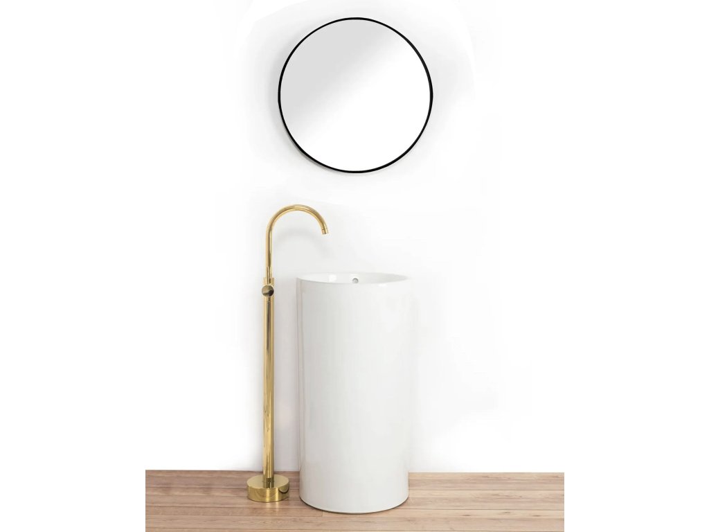 Voľne stojace batérie sú modernou a elegantnou možnosťou pre každú kúpeľňu. Je zaujímavou alternatívou k obvyklým nízkym a vysokým batériám. Skvele sa hodí do väčších kúpeľní, kde plní nielen čisto funkčnú, ale aj dekoratívnu rolu. V kombinácii s krásnym voľne stojacim umývadlom, dizajnovo ladiacim s batériou, vytvárajú dokonalý vizuálny efekt. Keramické hlavice zaručujú dlhú životnosť. Moderná a funkčná čierna podlahová batéria zaujme svojim neobvyklým deizajnom. Výrobok je vyrobený z mosadze potiahnutej zlatým povlakom. Batéria je veľmi odolná a ľahko sa čistí.Dodatočné parametre