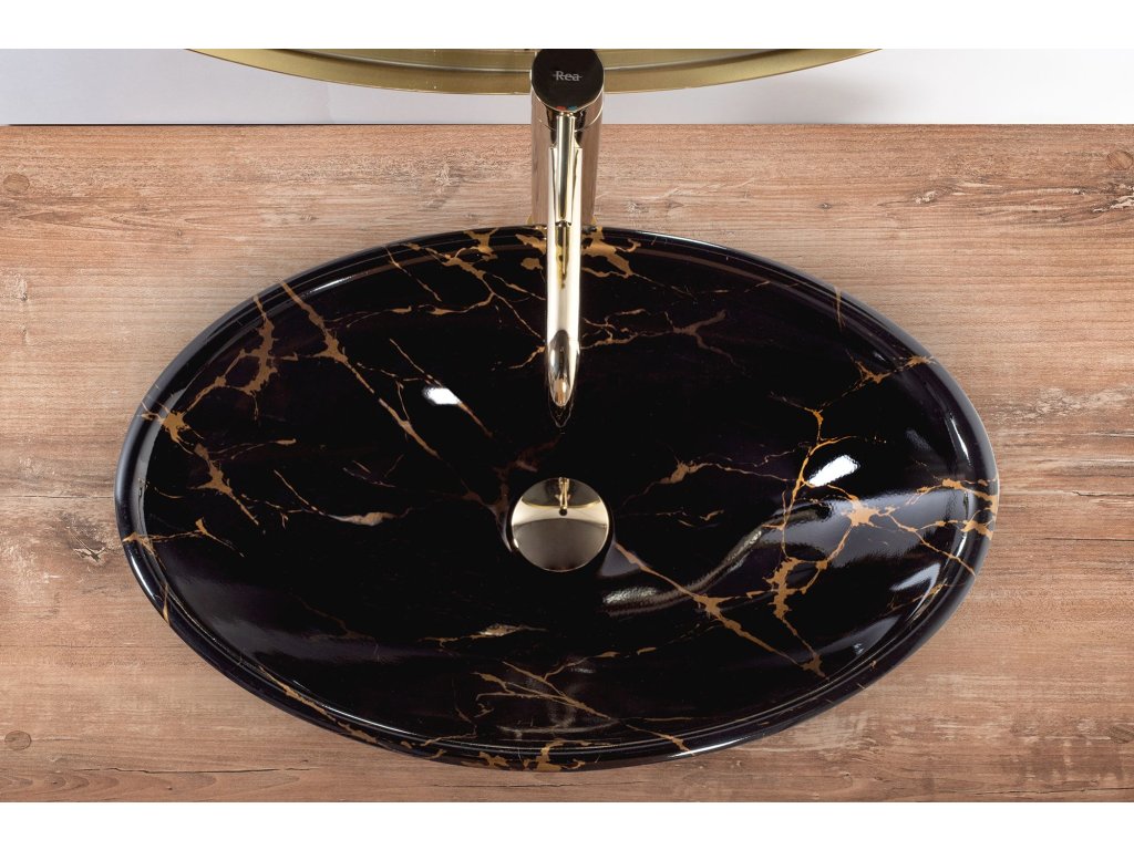 Rea Pamela Black Marble Shiny umývadlo na dosku 53 x 33 x 15 cm, čierna lesklá-vzor black marble, REA-U5067
