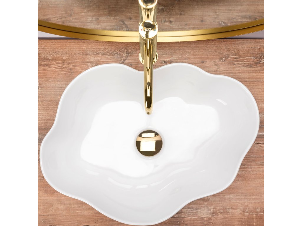Umývadlo je vyrobené z najkvalitnejšej keramiky bielej farby a oválneho, vlnitého tvaru. Povrchová úprava s vysokým leskom dodá interiéru úžasný vzhľad a ozdobí ho. Bude skvelým doplnkom pre milovníkov neštandardných tvarov, vnesie eleganciu do kúpeľňového zariadenia doma aj v kancelárii. Umývadlo je určené na montáž na dosku alebo skrinku. Je vyrobené z kvalitnej sanitárnej keramiky. Vďaka špeciálnej výrobnej fáze je odolné a ľahko sa udržiava v čistote.Dodatočné parametre