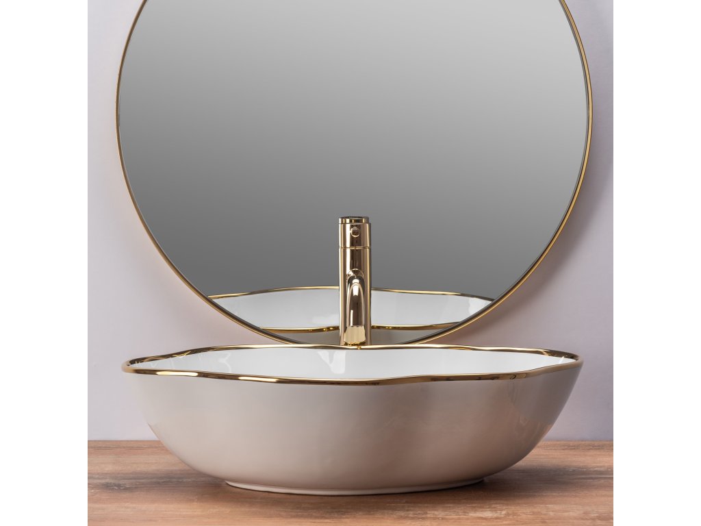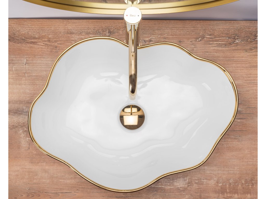 Rea Pearl umývadlo na dosku 52 x 38 cm, biela / zlatý okraj, REA-U0696