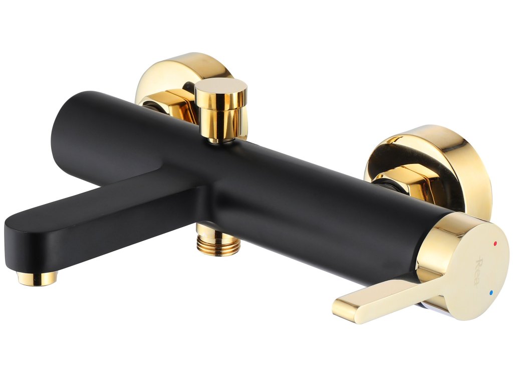 Rea Polo vaňová batéria s bodovou sprchovou sadou, čierna-zlatá, REA-B9979