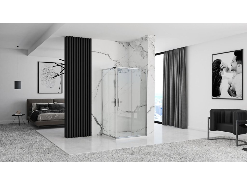Rea Punto, sprchový kút s posuvnými dverami, 90x90x190 cm, priehľadné sklo 5 mm, profil chróm, REA-K0867