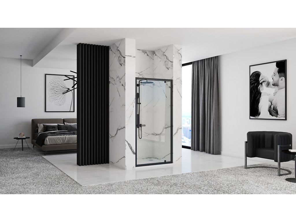 Rea Rapid Swing, jednokrídlové výklopné sprchové dvere 100 x 195 cm, priehľadné sklo, čierny profil, REA-K6410