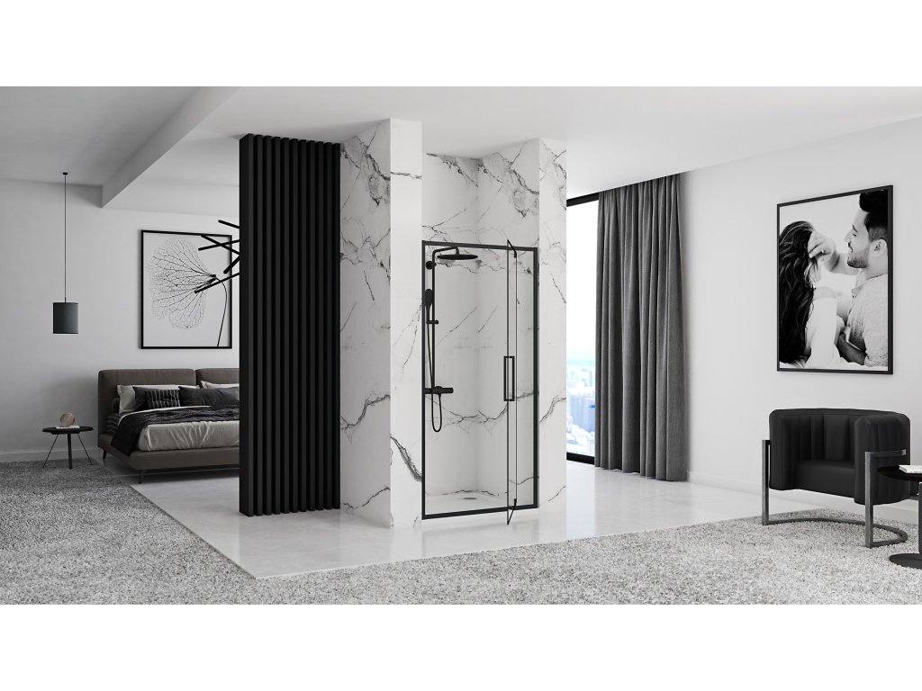 Rea Rapid Swing, jednokrídlové výklopné sprchové dvere 80 x 195 cm, priehľadné sklo, čierny profil, REA-K6408