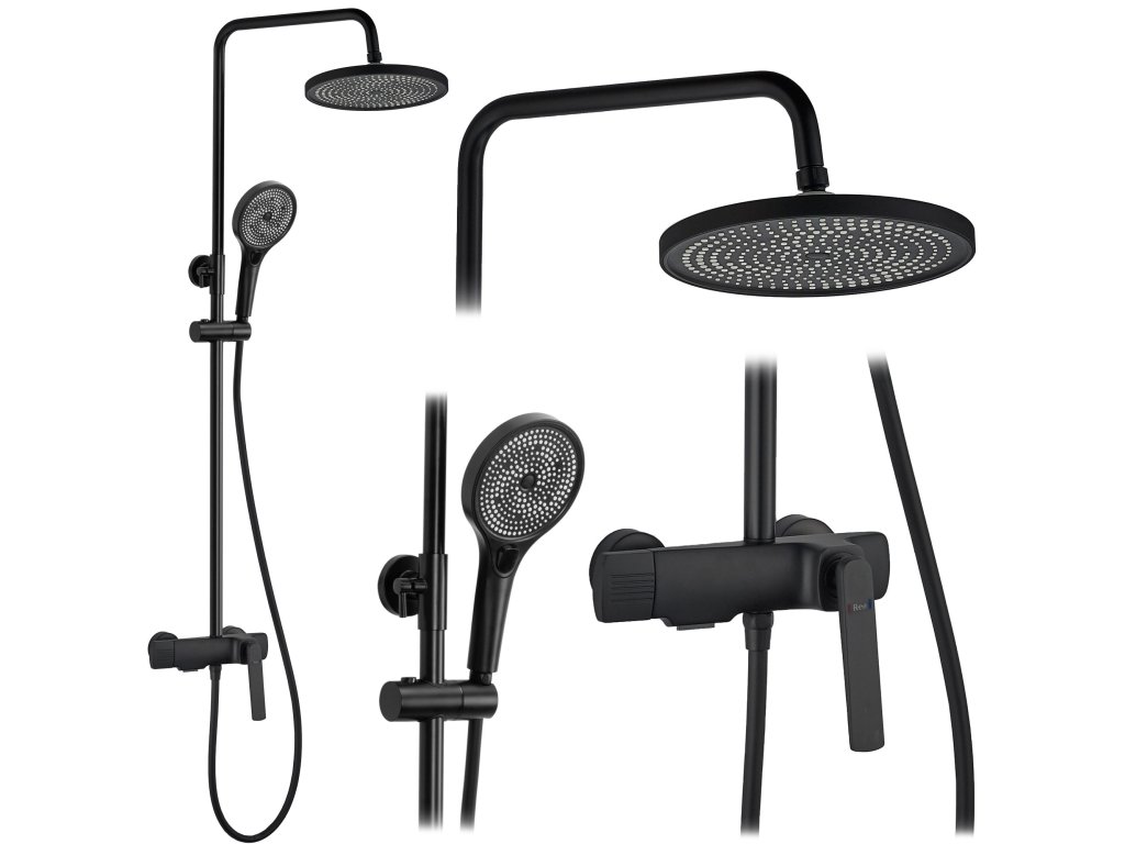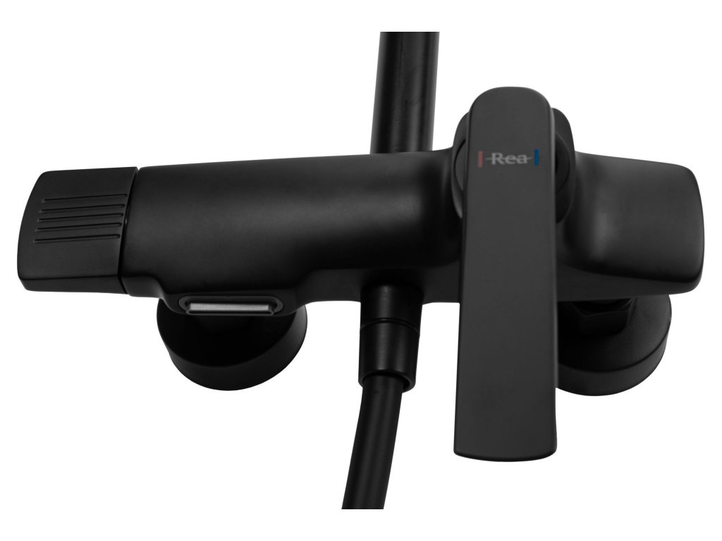 Rea Rebel, sprchový-vaňový set s dažďovou a ručnou sprchovou hlavicou, čierna matná, REA-P2416