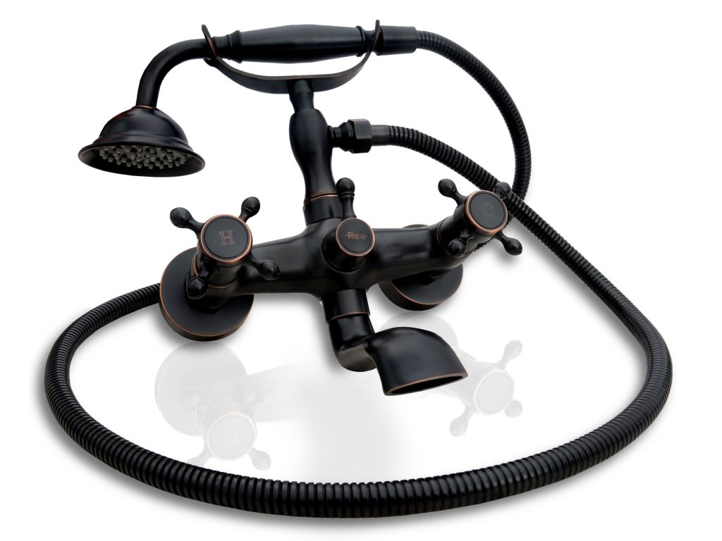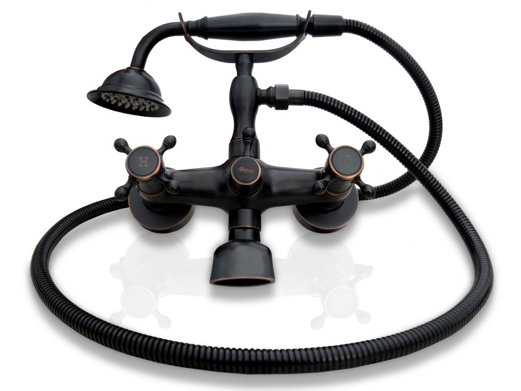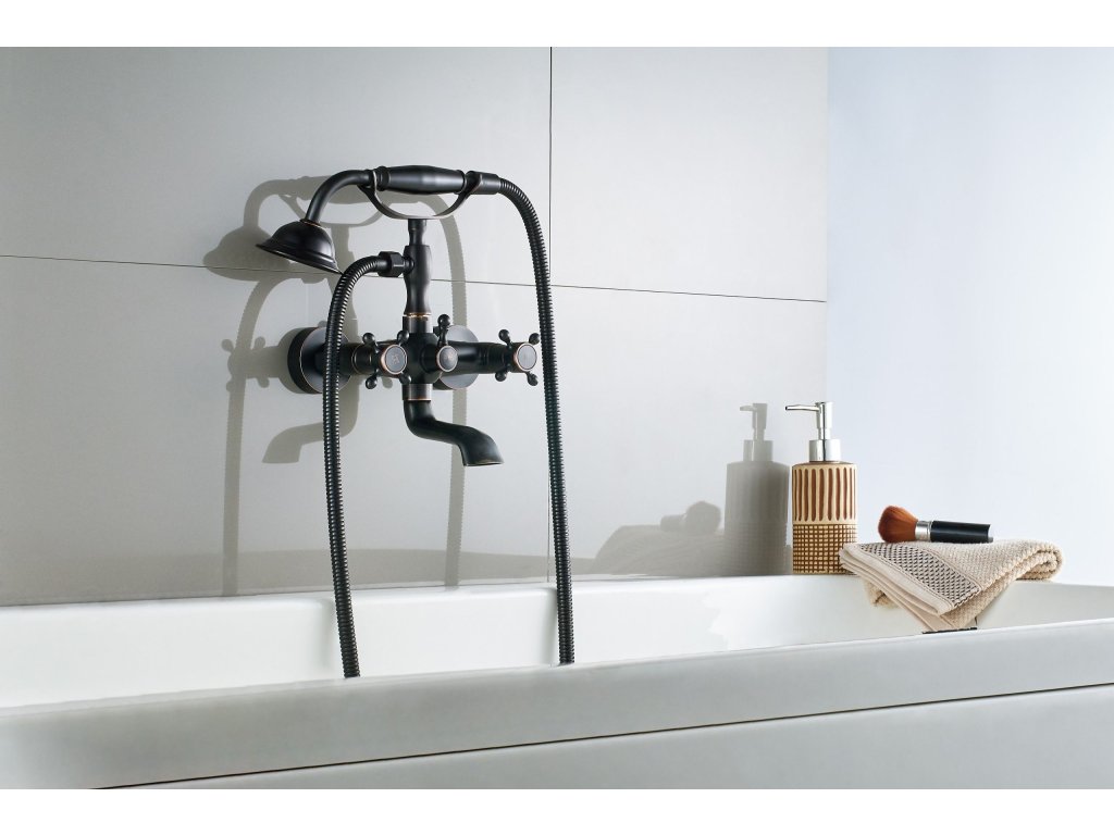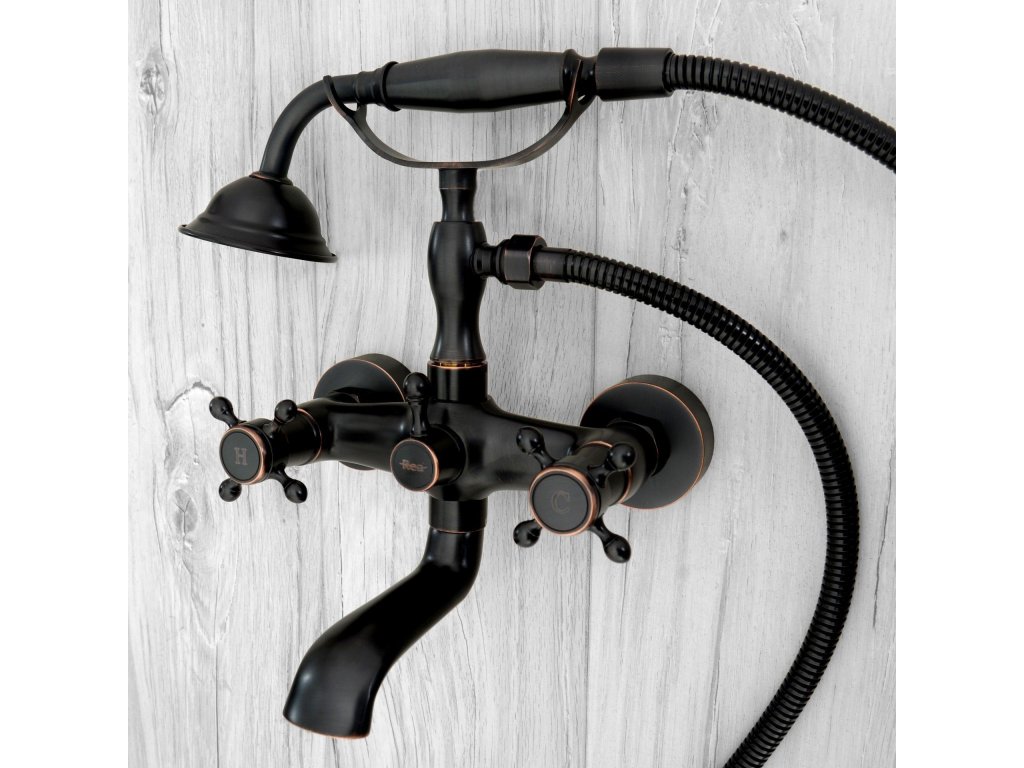 Rea Retro nástenná vaňová batéria + ručná sprchová sada, čierna, REA-B0224