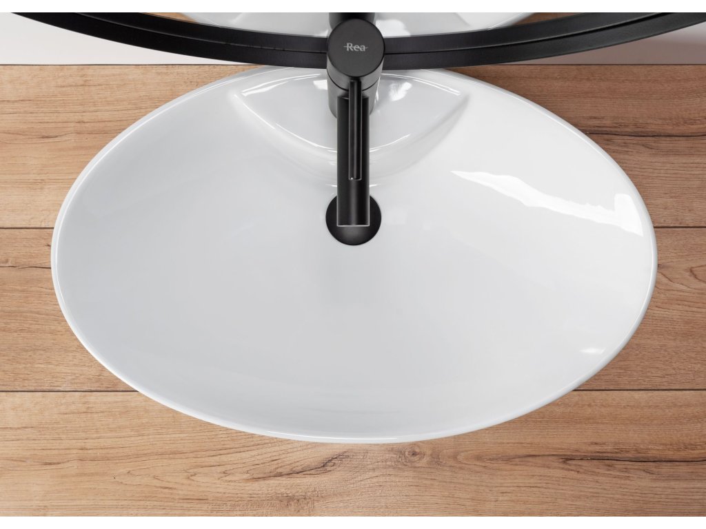 Snehobiele umývadlo s jedinečným moderným vzhľadom. Tvar umývadla s dodatočným miestom pre batériu je perfektnou kombináciou skvelého vzhľadu a vysokej praktickosti. Umývadlo Rea Rosa stojí na rozdiel od iných umývadiel na dosku na zvýšenej plošine a má patrične zníženú policu s otvorom na montáž batérie. Vďaka tomu je umývadlo veľmi užitočné a praktické. CADDodatočné parametre