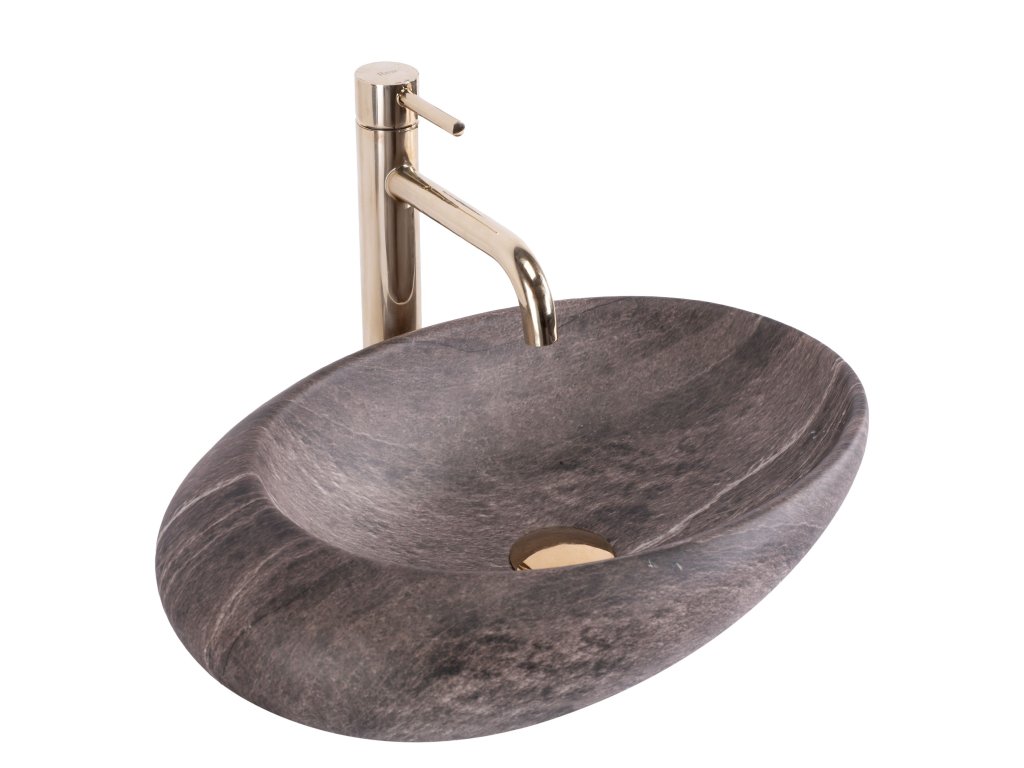 Moderná séria umývadiel imitujúcich kameň. Vďaka technike výroby vrchnej vrstvy umývadla má každý kus jedinečný a nenapodobiteľný vzor. Povrch imituje prírodný kameň. Ergonomický tvar umývadla umožňuje voľný odtok vody. Umývadlo možno namontovať na pracovnú dosku alebo skrinku. K tomuto umývadlu ponúkame najlepšie vysoké batérie a sifóny v mnohých farbách.Dodatočné parametre