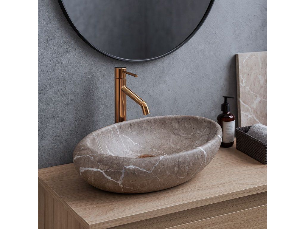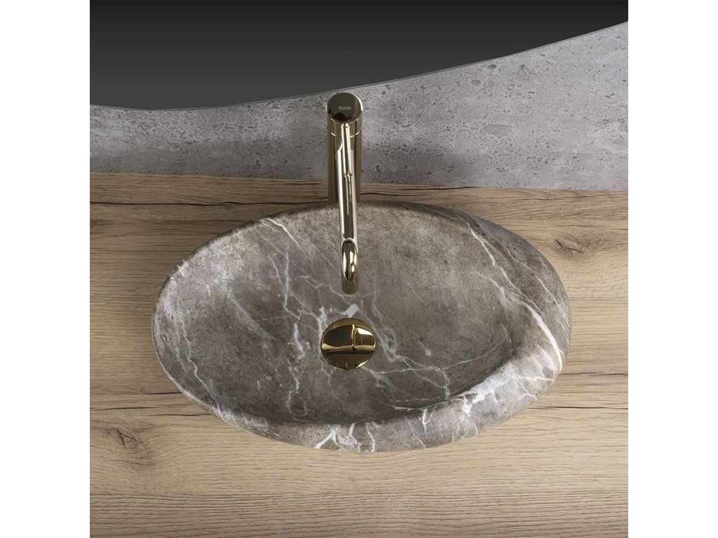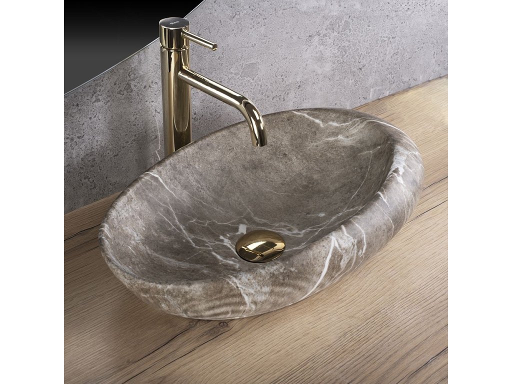 Moderná séria umývadiel imitujúcich kameň. Vďaka technike výroby vrchnej vrstvy umývadla má každý kus jedinečný a nenapodobiteľný vzor. Efekt imituje prírodný kameň. Ergonomický tvar umývadla umožňuje voľný odtok vody. Umývadlo možno namontovať na pracovnú dosku alebo skrinku. K tomuto umývadlu ponúkame najlepšie vysoké batérie a sifóny v mnohých farbách. CADDodatočné parametre
