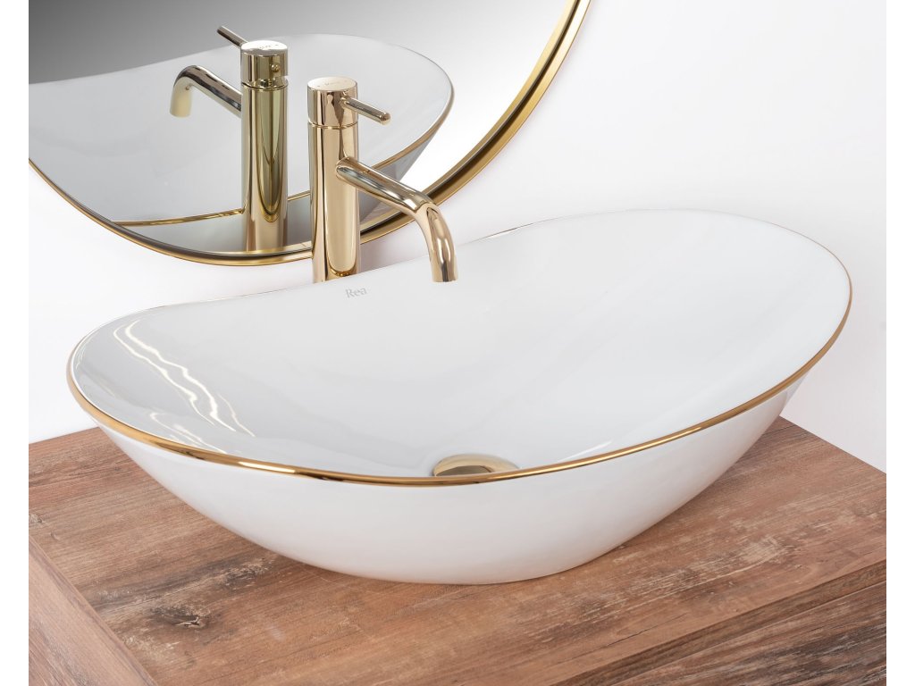 Rea Royal 60 umývadlo na dosku 62 x 36 cm, biela / zlatý okraj, REA-U8570