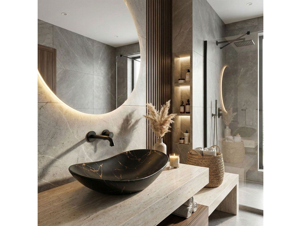 Predstavujeme Vám nové moderné umývadlo na dosku série Rea Royal. Umývadlo oválneho tvaru je vyrobené z materiálov najvyššej kvality a jeho vlastnosti splnia všetky vaše požiadavky. Tento model ocení predovšetkým zákazník, hľadajúci nielen praktické, ale aj estetické riešenie. Umývadlo je určené na montáž na dosku, ale je možné ho namontovať aj na skrinku. Umývadlo v čiernom matnom prevedení s jedinečným mramorovým vzorom sa navyše vďaka špeciálnej fáze výroby ľahko čistí a je veľmi odolné.Dodatočné parametre