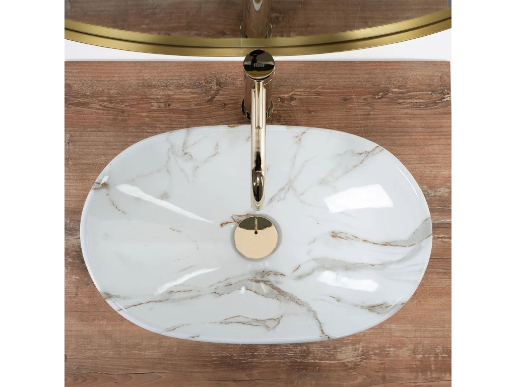 Predstavujeme Vám nové moderné umývadlo na dosku série Rea Royal. Umývadlo oválneho tvaru je vyrobené z materiálov najvyššej kvality a jeho vlastnosti splnia všetky vaše požiadavky. Tento model ocení predovšetkým zákazník, hľadajúci nielen praktické, ale aj estetické riešenie. Umývadlo je určené na montáž na dosku, ale je možné ho namontovať aj na skrinku. Umývadlo v čiernom matnom prevedení s jedinečným mramorovým vzorom sa navyše vďaka špeciálnej fáze výroby ľahko čistí a je veľmi odolné.Dodatočné parametre