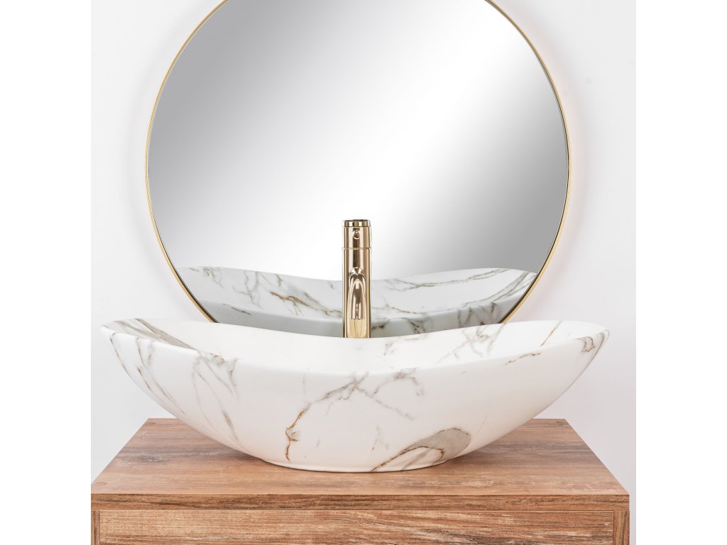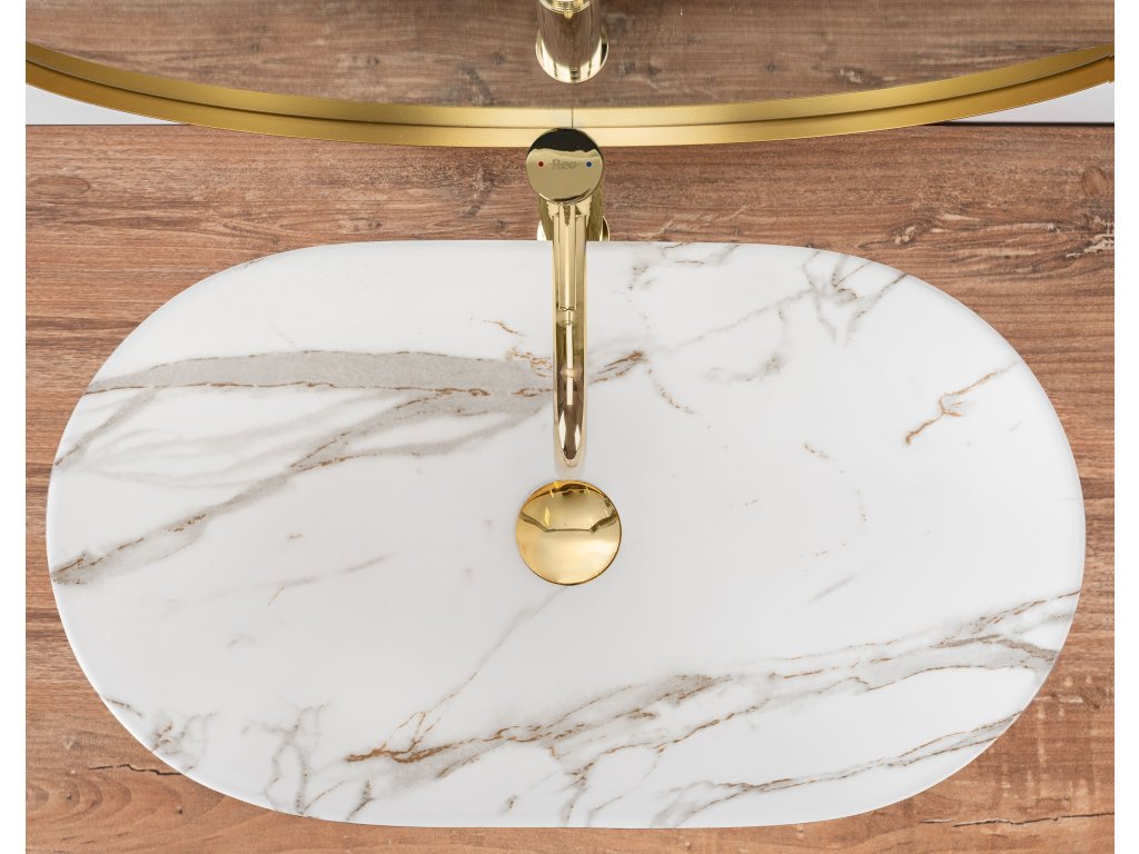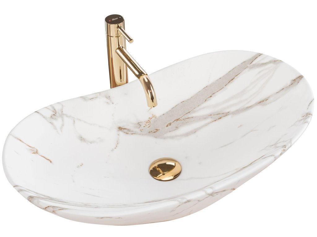 Predstavujeme Vám nové moderné umývadlo na dosku série Rea Royal. Umývadlo netradičného tvaru vyrobené z vysoko kvalitných materiálov. Vďaka svojim vlastnostiam splní požiadavky všetkých ľudí, ktorí požadujú dokonalé vlastnosti a parametre podľa svojich predstáv. Ide o perfektný model pre ľudí, ktorí hľadajú predovšetkým funkčné, ale hlavne jednoduché riešenie. Umývadlo je určené na montáž na dosku, ale je možné ho namontovať aj na skrinku. Umývadlo v bielom matnom prevedení s lávovým efektom sa navyše vďaka špeciálnej fáze výroby ľahko čistí, je veľmi odolné a má svoj jedinečný vzor.Dodatočné parametre