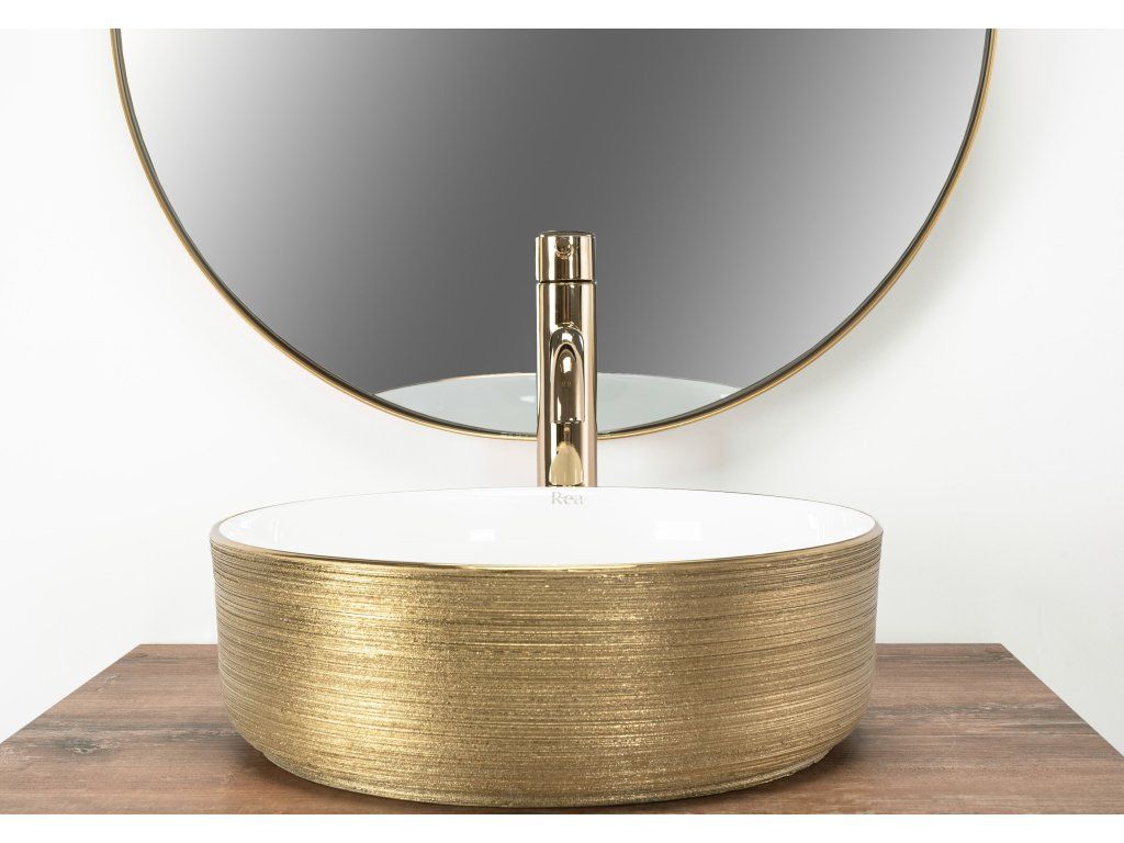 Rea Sami Brush Gold umývadlo na dosku 36 x 36 cm, biela-zlatá, REA-U6630