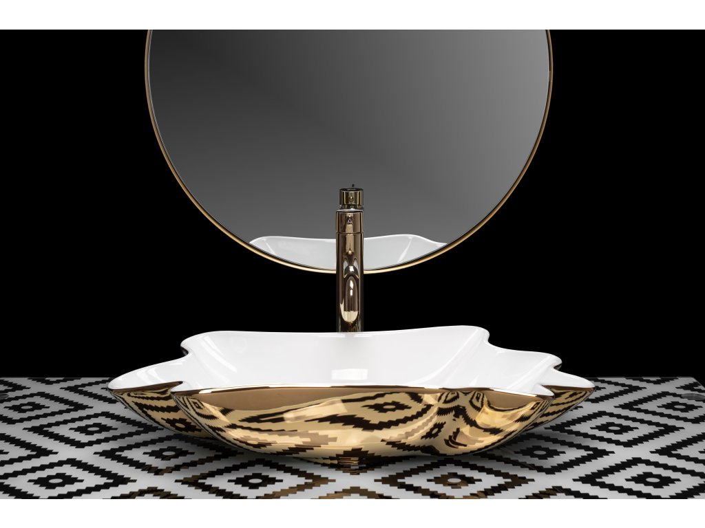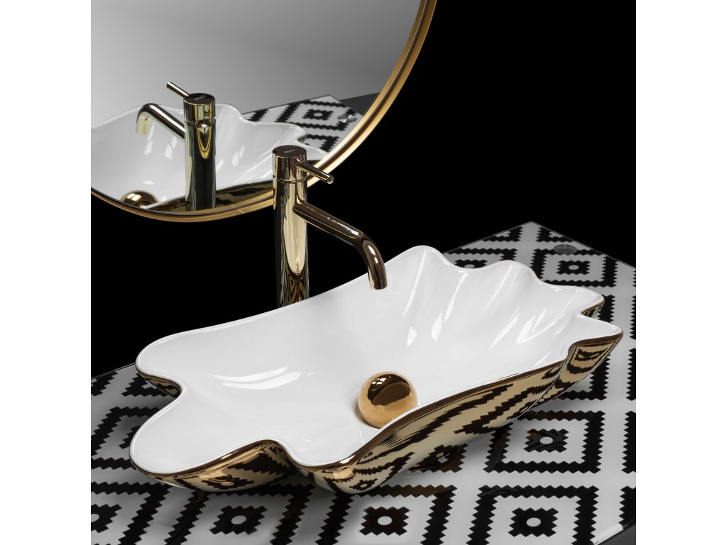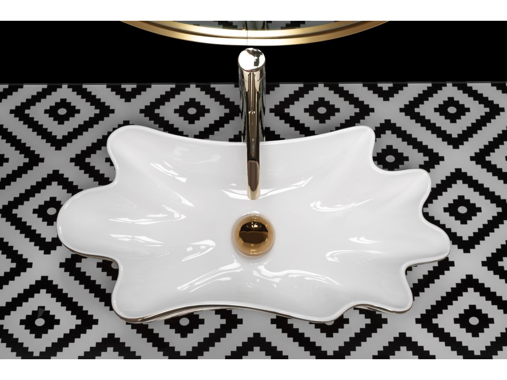 Rea Sea Infinity umývadlo na dosku + výpust, biela-zlatá, REA-U3400