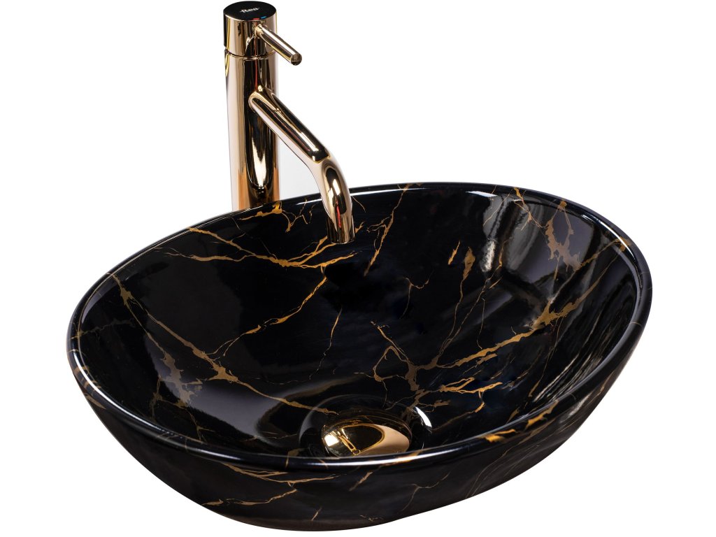 Rea Sofia Marble umývadlo na dosku 41 x 35 cm, čierna-vzor, REA-U5611