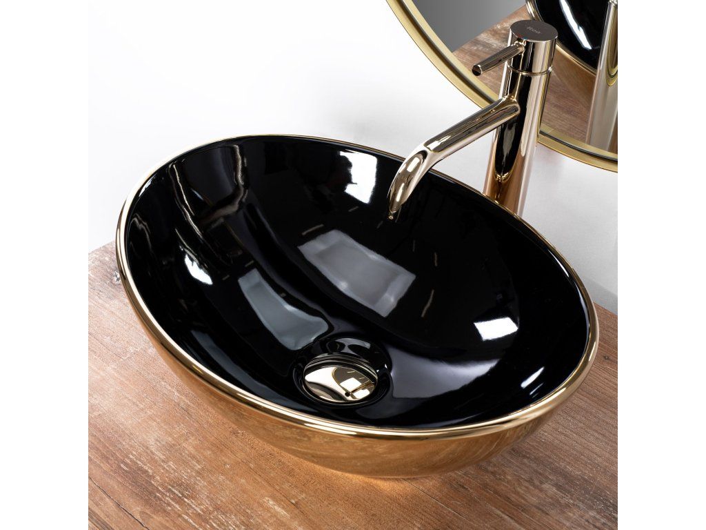 Predstavujeme Vám nové moderné umývadlo na dosku série Rea Sofia. Umývadlo oválneho tvaru je vyrobené z materiálov najvyššej kvality a jeho vlastnosti splnia všetky vaše požiadavky. Tento model ocení predovšetkým zákazník, hľadajúci nielen praktické, ale aj estetické riešenie. Umývadlo je určené na montáž na dosku, ale je možné ho namontovať aj na skrinku. Umývadlo v čiernom lesklom prevedení na vnútornej strane a zlatom lesklom prevedení na vonkajšej strane sa navyše vďaka špeciálnej fáze výroby ľahko čistí a je veľmi odolné.Dodatočné parametre