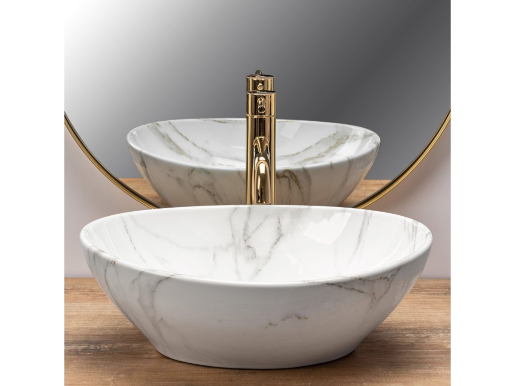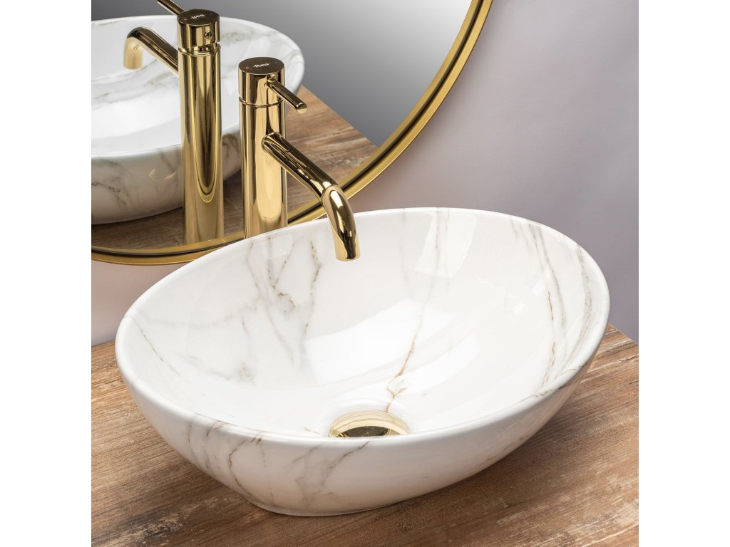 Predstavujeme Vám nové moderné umývadlo na dosku série Rea Sofia. Umývadlo oválneho tvaru je vyrobené z materiálov najvyššej kvality a jeho vlastnosti splnia všetky vaše požiadavky. Tento model je vhodný predovšetkým pre zákazníka, hľadajúceho funkčné, ale hlavne jednoduché riešenie. Umývadlo je určené na montáž na dosku, ale je možné ho namontovať aj na skrinku. Umývadlo v bielom lesklom prevedení s mramorovým nádychom sa navyše vďaka špeciálnej fáze výroby ľahko čistí a je veľmi odolné. Špeciálna povrchová úprava dáva umývadlám jedinečný mramorový vzor.Dodatočné parametre