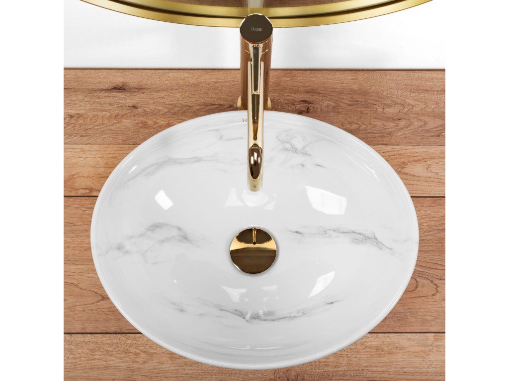 Predstavujeme Vám nové moderné umývadlo na dosku série Rea Sami. Umývadlo kruhového tvaru je vyrobené z materiálov najvyššej kvality a jeho vlastnosti splnia všetky vaše požiadavky. Tento model ocení predovšetkým zákazník, hľadajúci nielen praktické, ale aj estetické riešenie. Umývadlo je určené na montáž na dosku, ale je možné ho namontovať aj na skrinku. Umývadlo v bielom lesklom prevedení s jedinečným mramorovým vzorom sa navyše vďaka špeciálnej fáze výroby ľahko čistí a je veľmi odolné.Dodatočné parametre