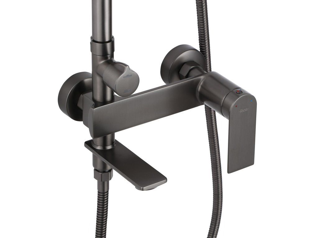 Rea Storm, vaňová/sprchová súprava s dažďovou hlavovou sprchou a ručnou sprchovou hlavicou, grafitová, REA-P9534