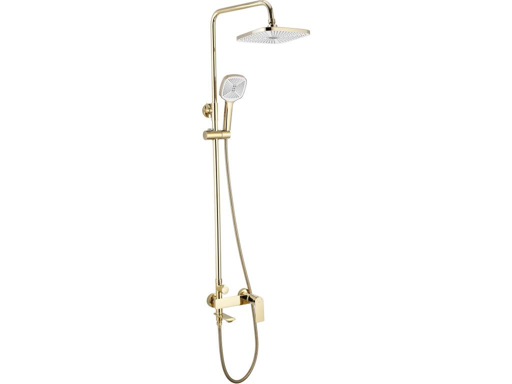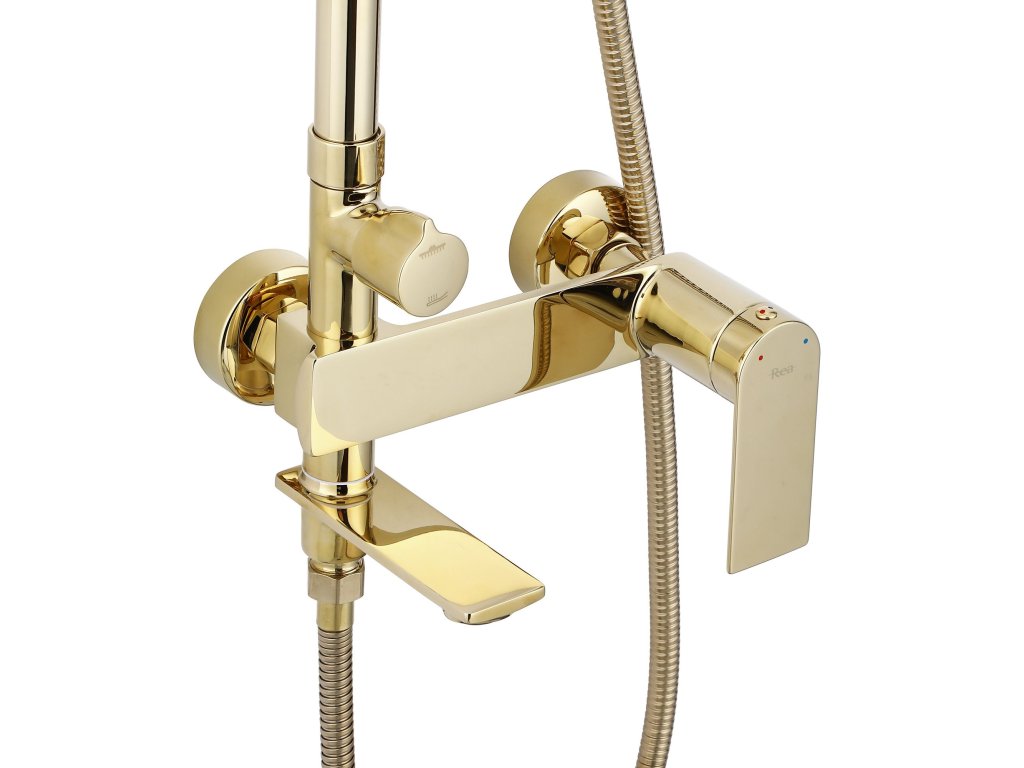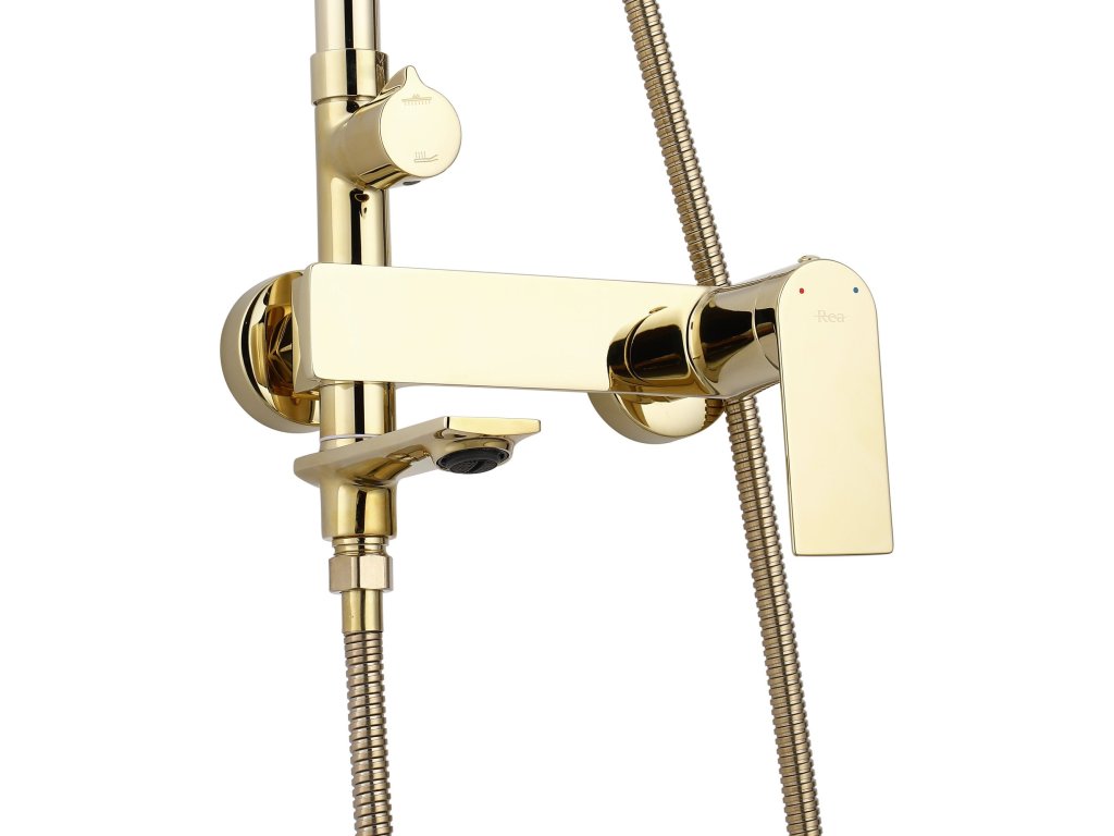 Rea Storm, vaňová/sprchová súprava s dažďovou hlavovou sprchou a ručnou sprchovou hlavicou, zlatá lesklá, REA-P9531