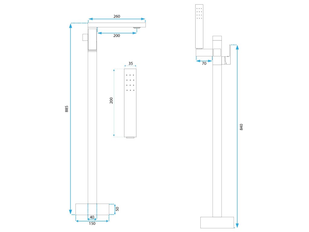 Rea Tery voľne stojaca batéria s ručnou sprchovou súpravou h-885, čierna matná, REA-B5304