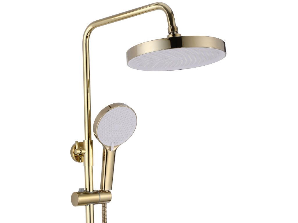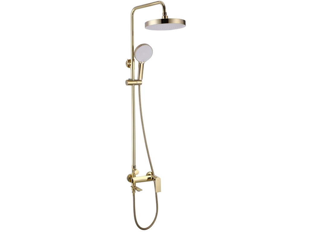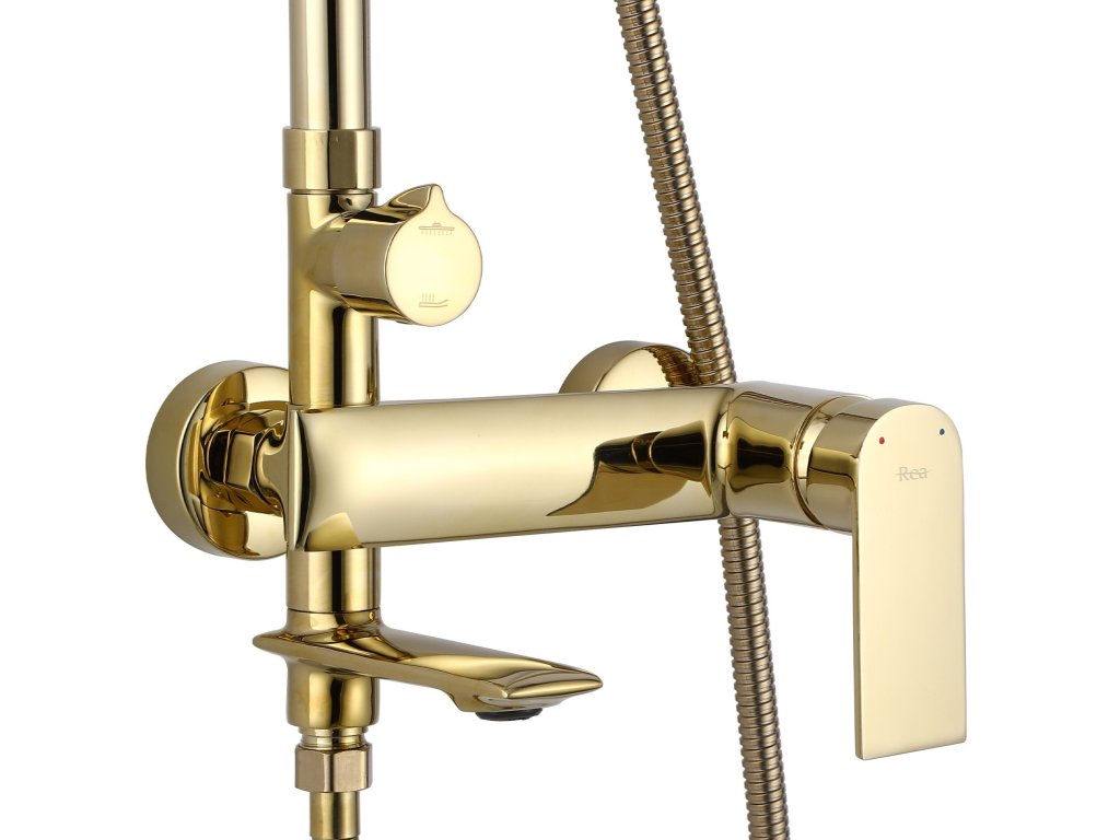 Rea Veneta, vaňová/sprchová súprava s dažďovou hlavovou sprchou a ručnou hlavicou, zlatá lesklá, REA-P7842