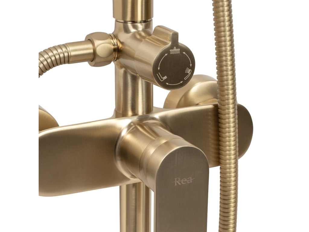 Rea Verso, sprchová súprava s pákovou batériou a vaňovou výlevkou, zlatá matná, REA-P9146