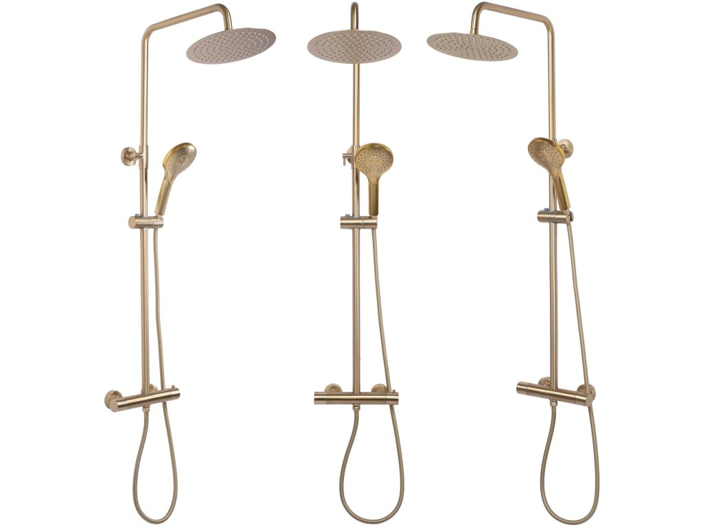 Rea Vincent sprchový set s dažďovou hlavicou a ručnou sprchovou sadou, termostatická batéria, zlatá brúsená, REA-P6602
