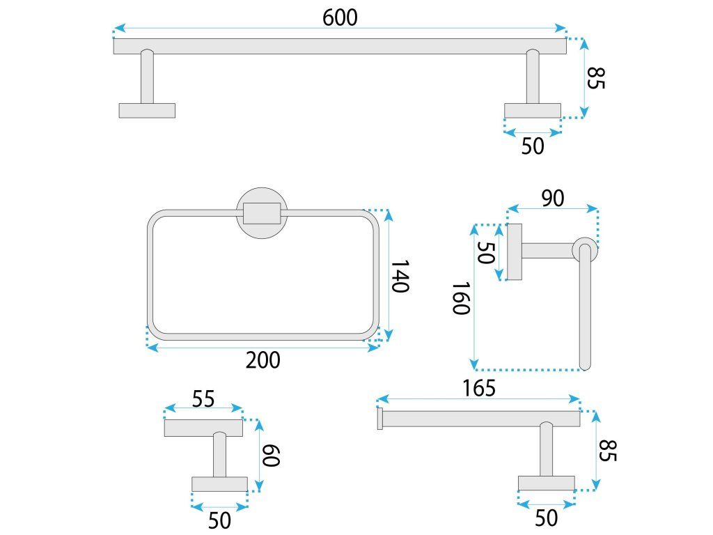 Sada kúpeľňových doplnkov Grid je elegantné a funkčné riešenie, ktoré sa dokonale hodí do každej modernej kúpeľne. Súčasťou sady je držiak na veľký uterák, držiak na toaletný papier, háčik a kruh na uterák, čím vytvára jednotný a štýlový celok na každodenné použitie. Všetky prvky sú vyrobené z odolného kovu, ktorý je odolný voči vlhkosti a korózii, vďaka čomu si dlhodobo zachovávajú estetický vzhľad. Doplnky sa montujú priskrutkovaním, čo zaručuje stabilitu, pevné uchytenie a dlhú životnosť aj pri intenzívnom používaní. Kúpeľňová sada Grid spája minimalistický dizajn s vysokou kvalitou spracovania. Jednoduchý geometrický tvar a dekoratívne ryhovanie sa dokonale hodia do klasických aj moderných interiérov. Je to ideálna voľba pre tých, ktorí oceňujú poriadok, funkčnosť a nadčasový štýl.Dodatočné parametre