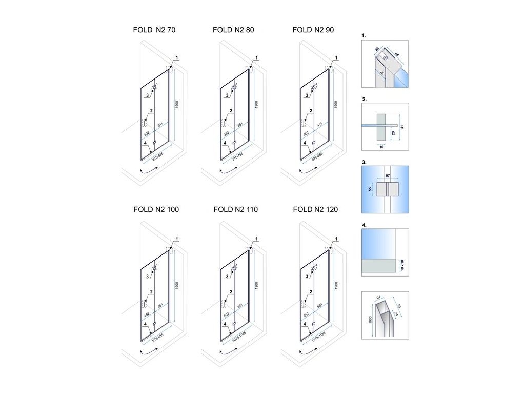 Sprchový kút Fold sa skladá z dvoch sklopných sklenených dverí s elegantnými chrómovými prvkami. Tento model je ideálnym riešením do malých a nenáročných priestorov kúpeľne. Každé z krídel sa dá sklopiť k stene smerom dovnútra aj von. To ponúka neobmedzené možnosti praktického využitia kúpeľne. Sklo v sprchovom kúte Fold je nielen bezpečné, ale aj praktické vďaka povrchovej úprave Easy Clean. Vďaka tejto modernej technológii sa na skle nevytvára vodný kameň a na čistenie nie je potrebné používať silné prostriedky. Návod na použitie CADDodatočné parametre