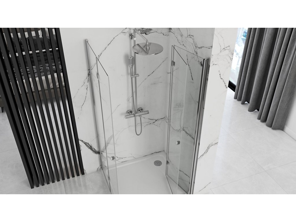 Sprchový kút Fold sa skladá z dvoch sklopných sklenených dverí s elegantnými chrómovými prvkami. Tento model je ideálnym riešením do malých a nenáročných priestorov kúpeľne. Každé z krídel sa dá sklopiť k stene smerom dovnútra aj von. To ponúka neobmedzené možnosti praktického využitia kúpeľne. Sklo v sprchovom kúte Fold je nielen bezpečné, ale aj praktické vďaka povrchovej úprave Easy Clean. Vďaka tejto modernej technológii sa na skle nevytvára vodný kameň a na čistenie nie je potrebné používať silné prostriedky. Návod na použitie CADDodatočné parametre
